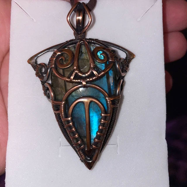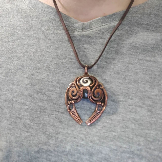 Wire wrapped third eye magical talisman necklace. Unique spiral wrework pendant