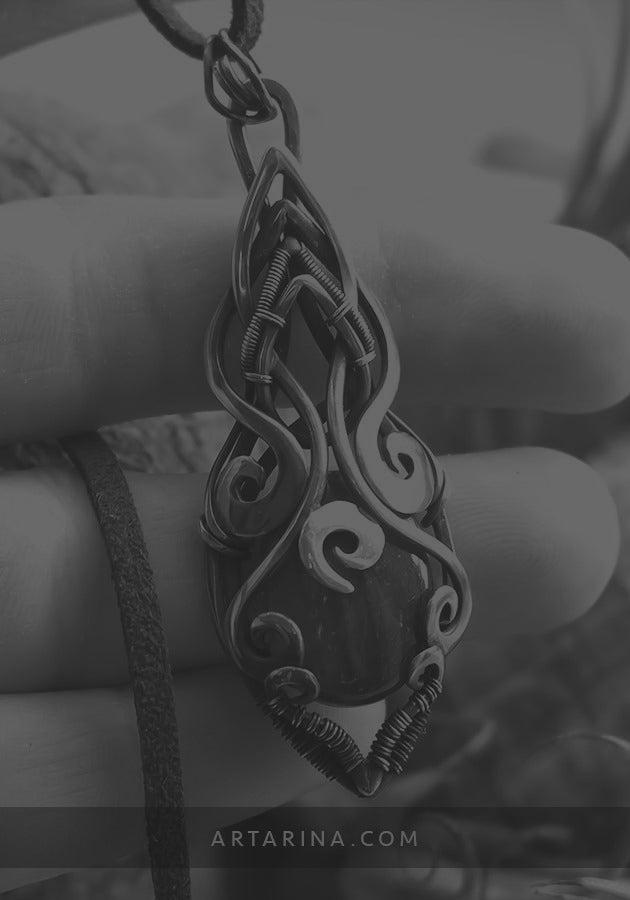 Copper gets darken with time. To return the original shine, simply wipe the convex sections on your necklace (in case of severe darkening it is permissible to apply a little toothpaste on a dry cloth), and then rinse the product with water and wipe it with a soft textile