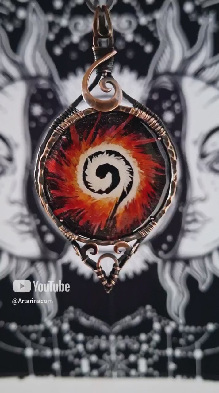 Rave accessories vaporwave jewelry, alt clothing, Spiral fire portal necklace, acrylic pour fluid art jewelry, hand painted pendant