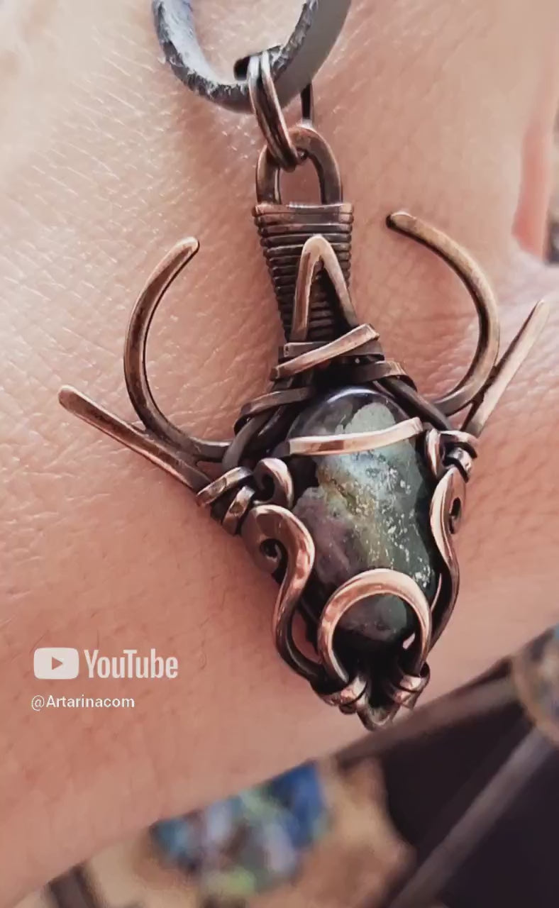 Pure copper wire wrapped necklace with hand painted space resin cabochon. Necklace is 100% handmade, one of a kind and unique. Original design by Artarina