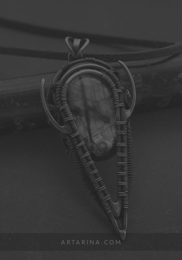 Copper wire wrapped necklace with multicolored labradorite