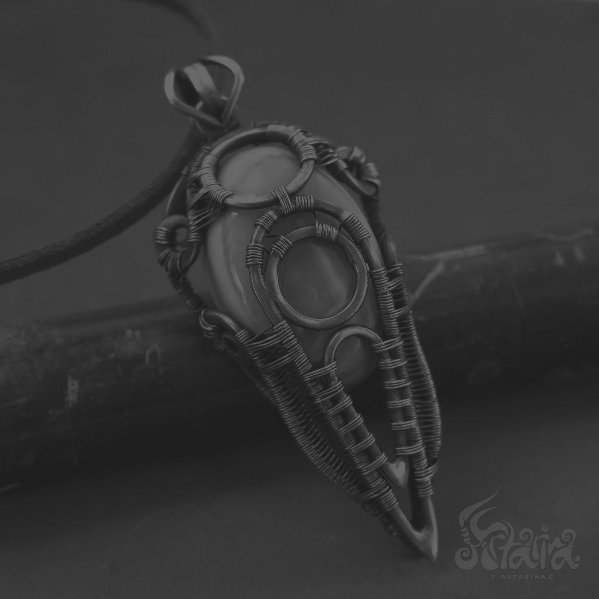 Cosmic Pendant - a unique and futuristic piece of wire wrapped jewelry that is perfect for anyone looking for something truly special. This pendant has been expertly handcrafted using high-quality copper wire and features a stunning blue opal gemstone at its center.