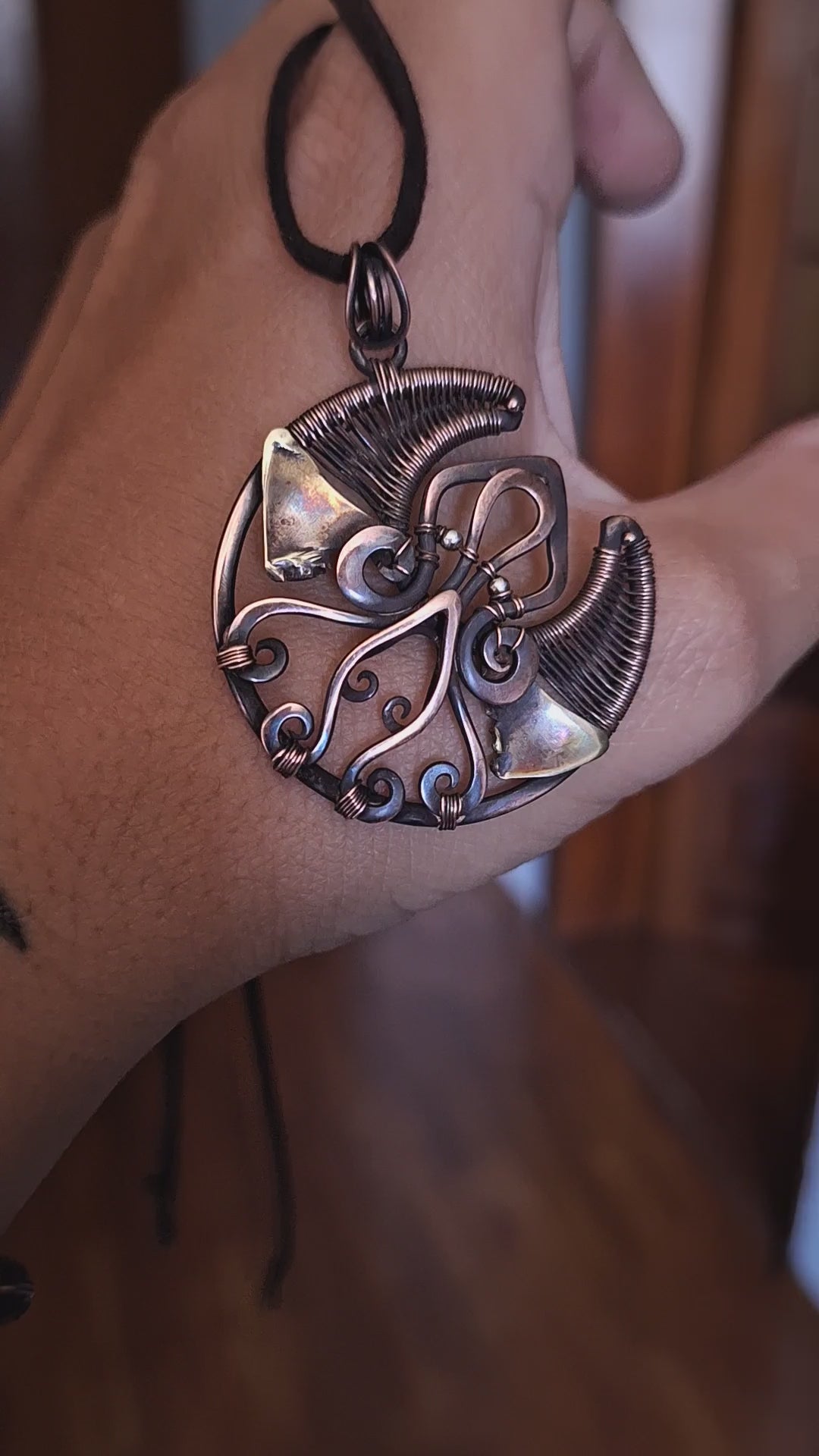 Cthulhu crescent moon necklace Wire wrapped unique sacred jewelry