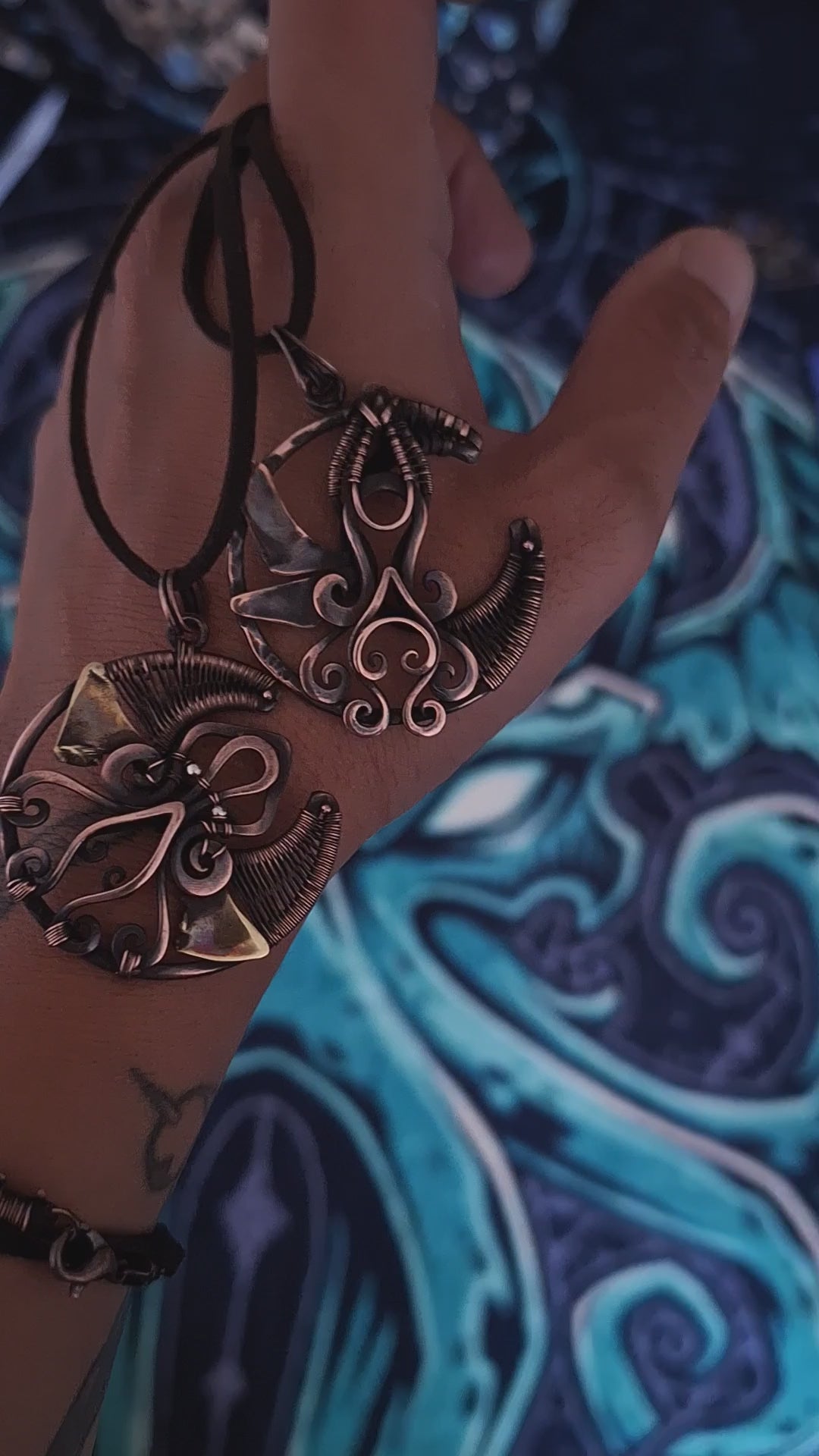 Cthulhu jewelry. Unique moon necklace with octopus symbol
