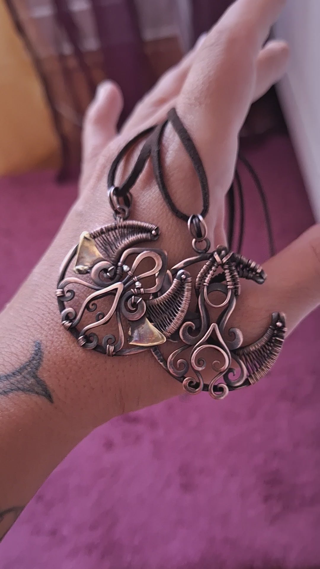 Copper gets darken with time. To return the original shine, simply wipe the convex sections on your necklace (in case of severe darkening it is permissible to apply a little toothpaste on a dry cloth), and then rinse the product with water and wipe it with a soft textile
