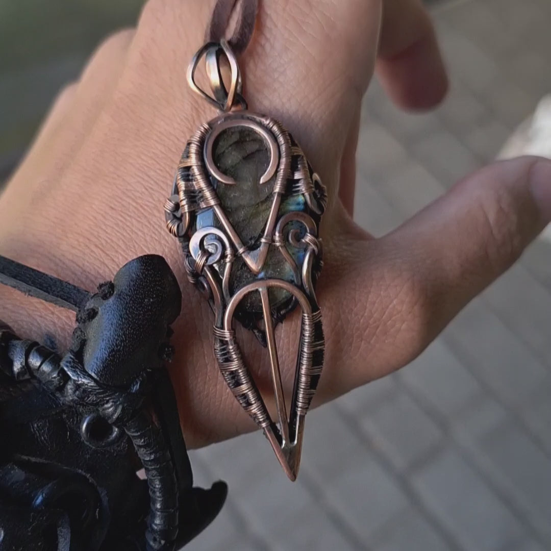 Dungeon master robe necklace. Magick amulet sacred labradorite jewelry