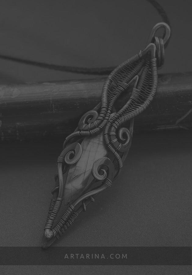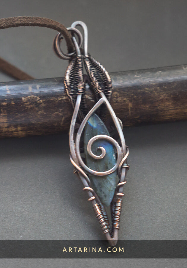 Wire woven mixed metal copper and silver elf pendant with multifire labradorite.