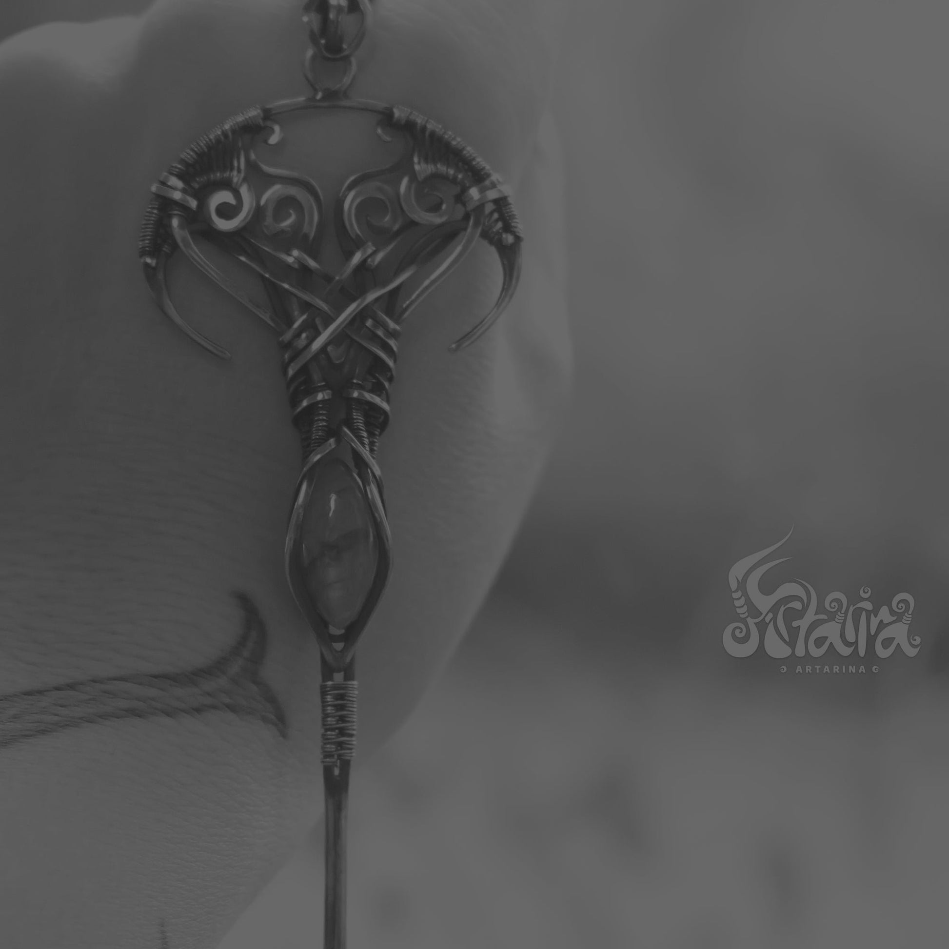 Elven necklace | Long bronze forest fairy epic fantasy jewelry | Elfic long wire gemstone pendant | Bronze wire wrap