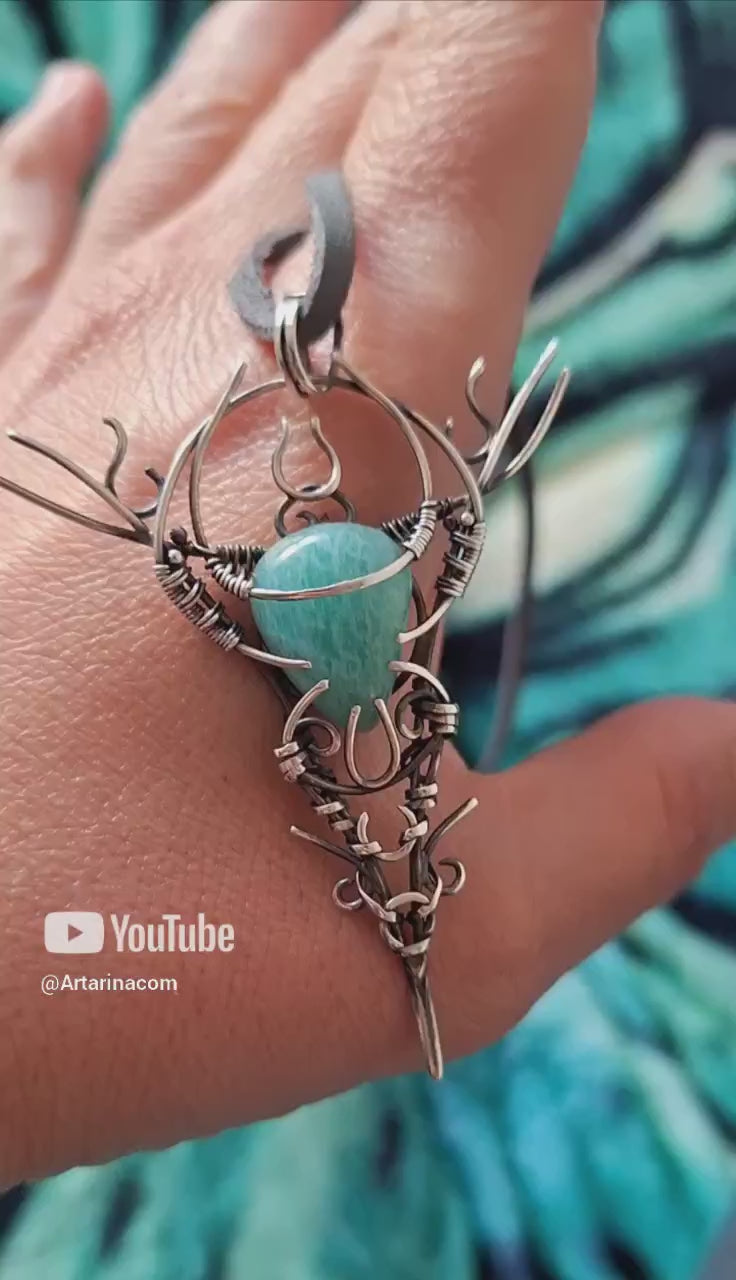 This exquisite piece features a mesmerizing mint-colored Amazonite stone, delicately embraced by a sterling silver wirework pendant.
