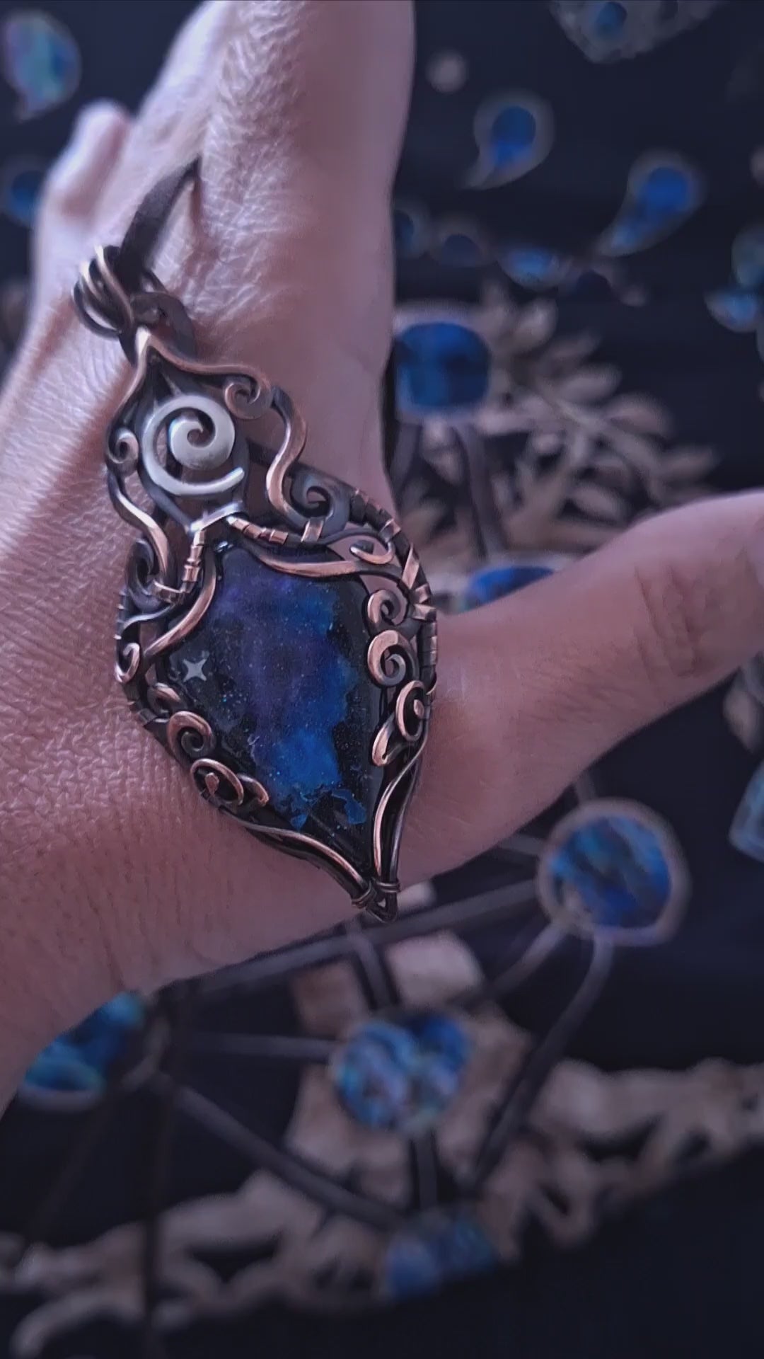 - Materials: pure copper, sterling silver, resin, acrylic paintings