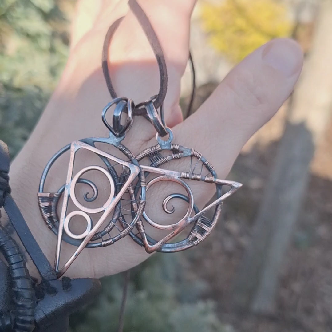 Hand crafted copper wire wrapped geometrical pendant. Necklace is 100% handmade, one of a kind and unique. Original design by Artarina