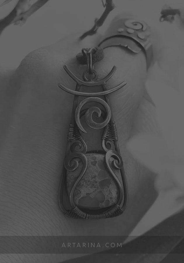 Copper gets darken with time. To return the original shine, simply wipe the convex sections on your necklace (in case of severe darkening it is permissible to apply a little toothpaste on a dry cloth), and then rinse the product with water and wipe it with a soft textile