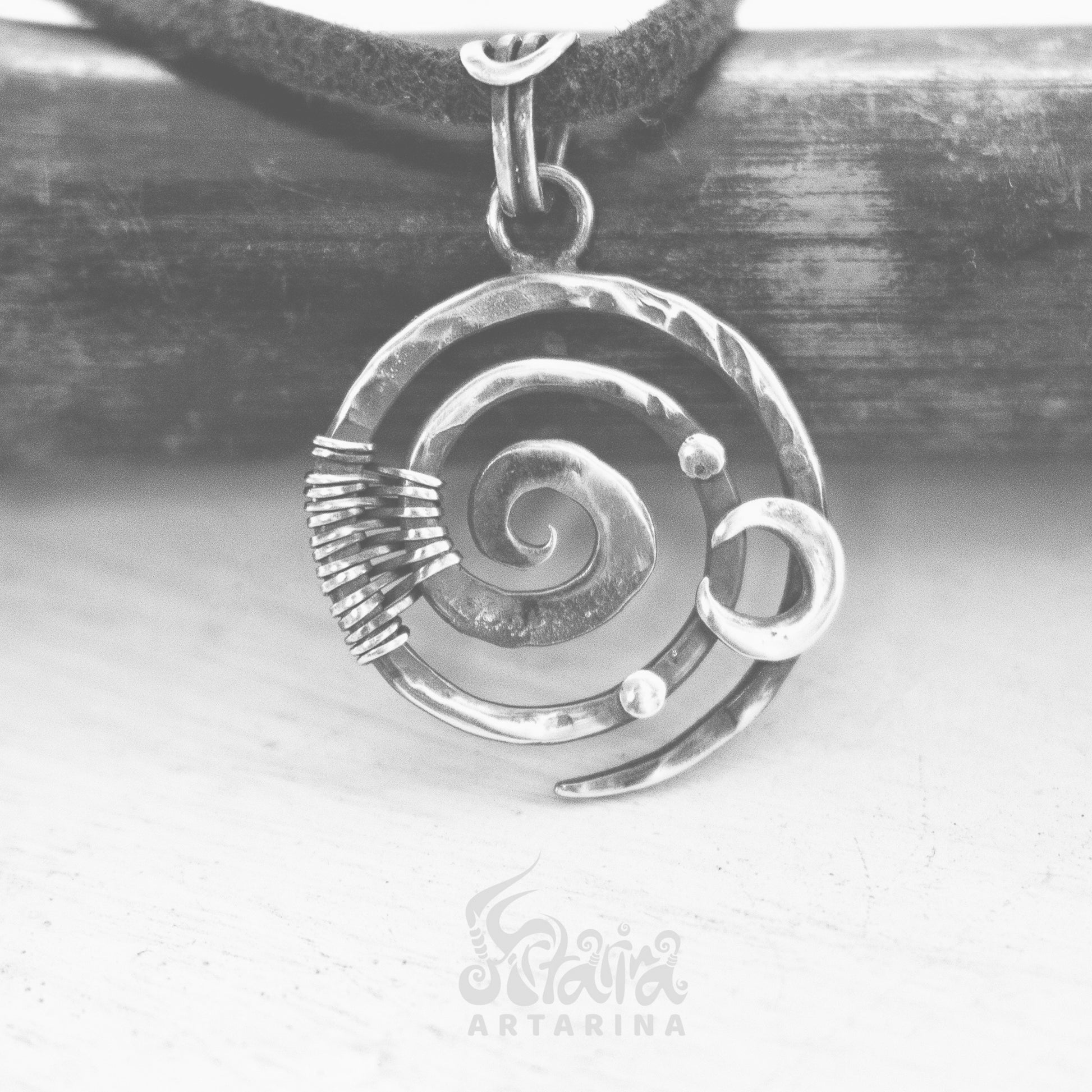 Handmade hand forged simple minimalistic swirl necklace. This pendant is hand cut, shaped and hammered. Spiral necklace is 100% handmade, one of a kind and unique. Original design by Artarina.