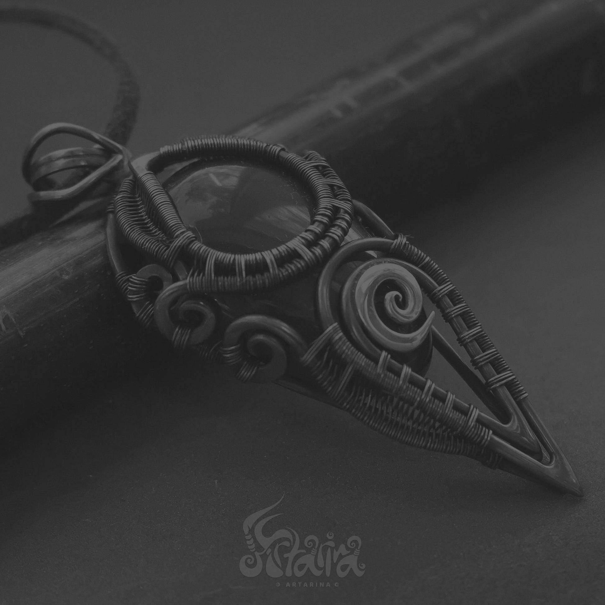 Handcrafted unique obsidian necklace Black natural stone handmade jewelry pendant