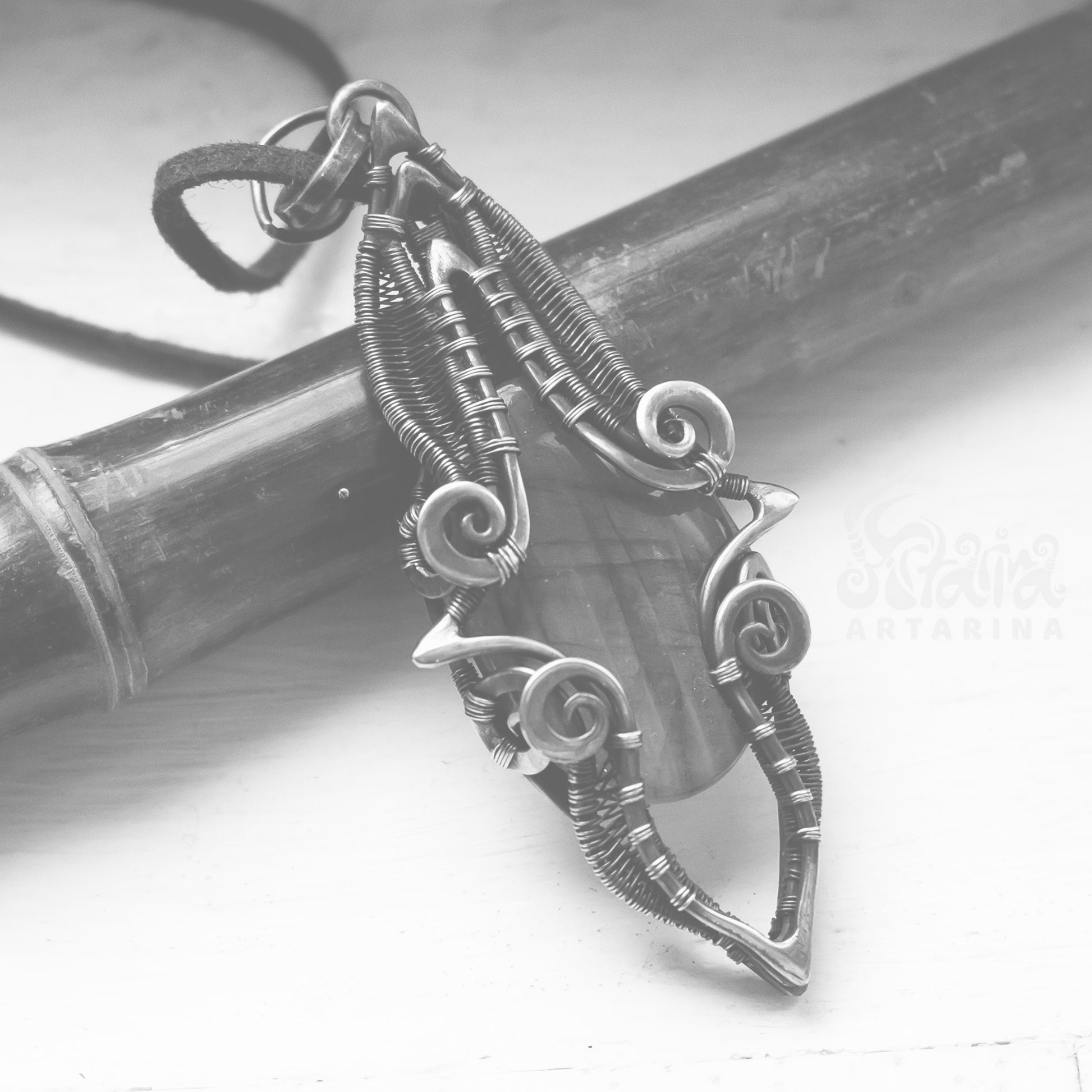 Handmade wire wrapped pendant necklace with natural labradorite stone. Necklace is 100% handmade, one of a kind and unique. Original design by Artarina