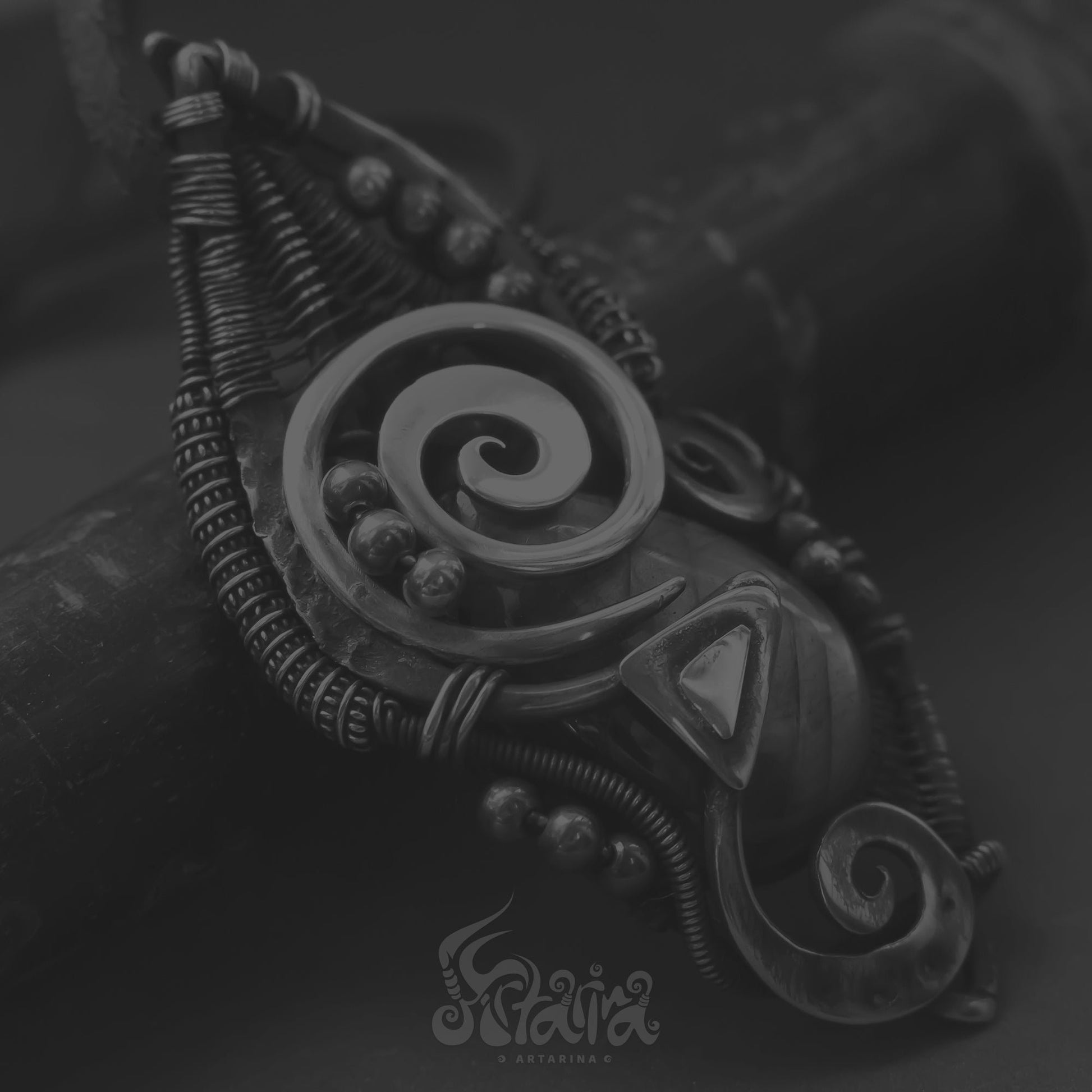Heady wire wrapped pendant | Unique copper and silver hand forged creative jewelry | Complex design jewelry