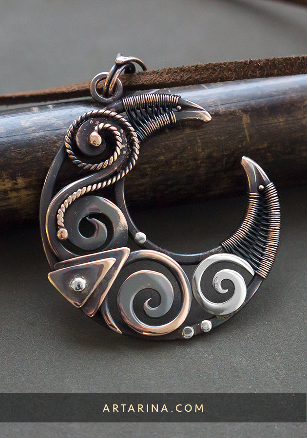 Crescent moon wire wrapped pendant