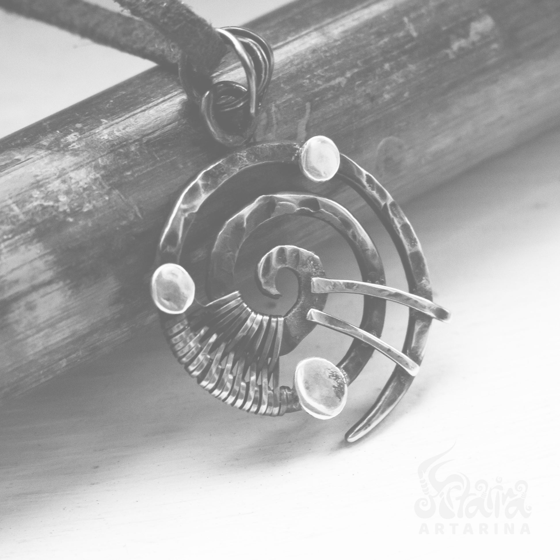 Handmade hand forged wire wrapped spiral necklace. Each piece is hand cut, shaped and hammered. This spiral necklace is 100% handmade, one of a kind and unique. Original design by Artarina.