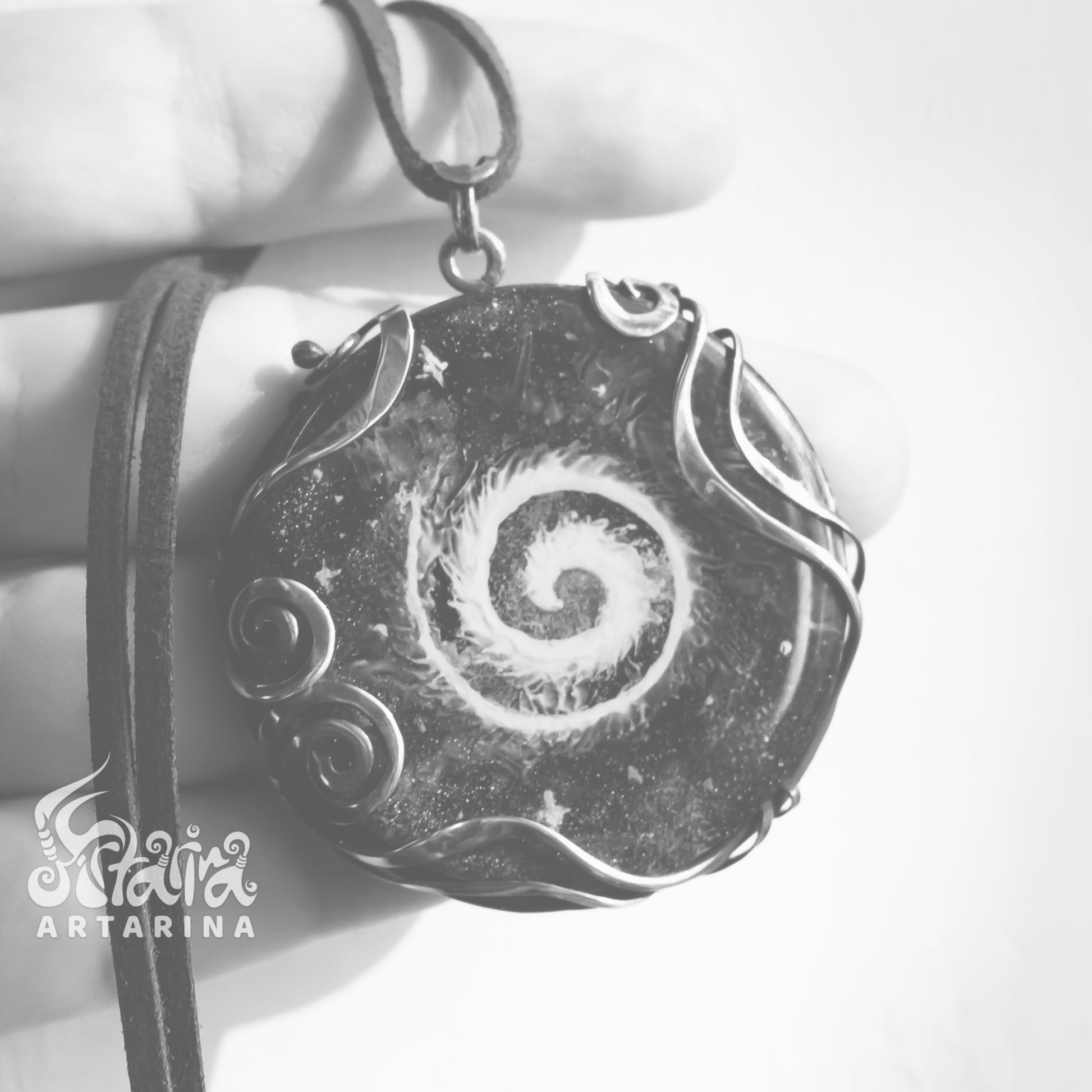 Handmade copper wire wrapped necklace with purple space hand painted cabochon. Necklace is one of a kind and unique. Original design by Artarina