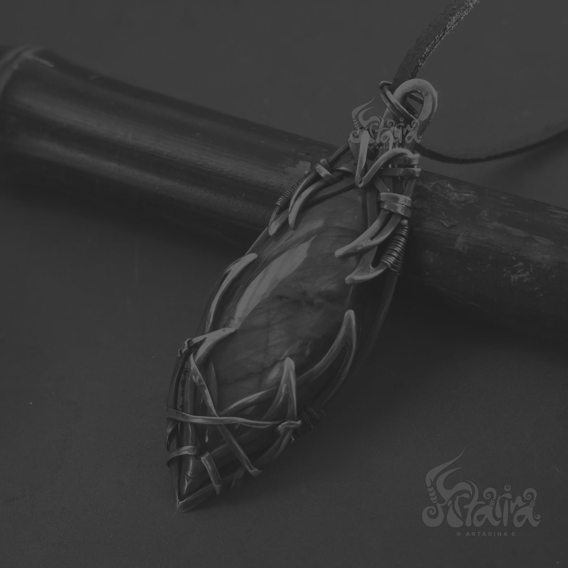 Large statement stone pendant | Bold Unique handcrafted blue labradorite necklace