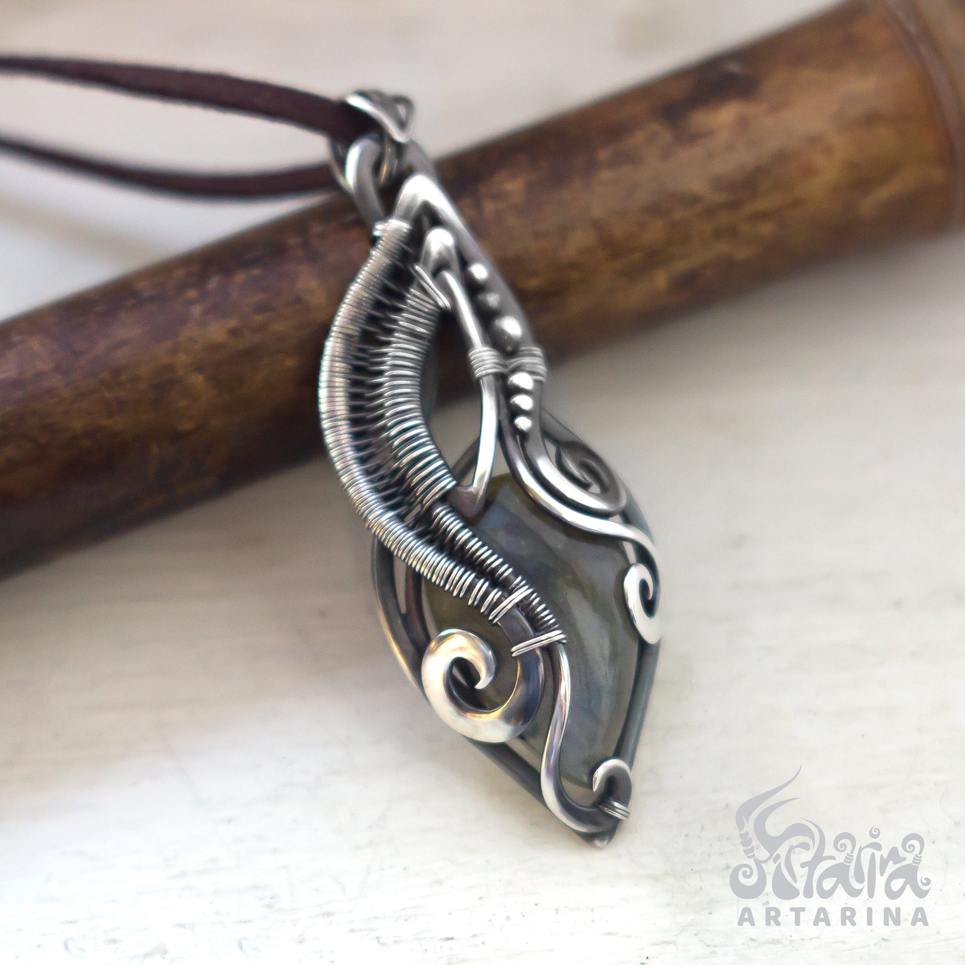 Wire Wrapped Light Blue Labradorite Silver Pendant, a stunning piece of unique wire wrap jewelry that showcases the natural beauty of labradorite in a one-of-a-kind design. This pendant features a beautiful light blue labradorite stone, carefully wire-wrapped using high-quality silver wire to create a stunning and intricate design.