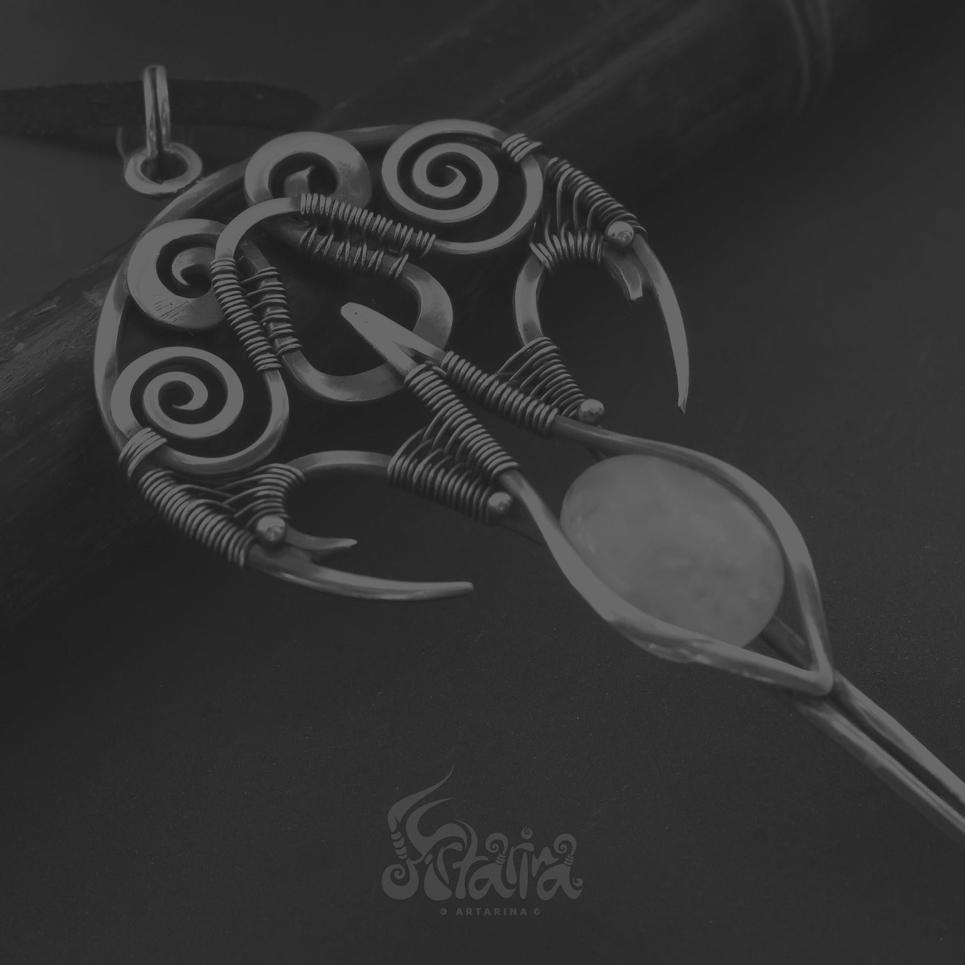 Long silver pendant necklace | Striking and fashionable piece of futuristic jewelry | Rustic long large necklace with moonstone
