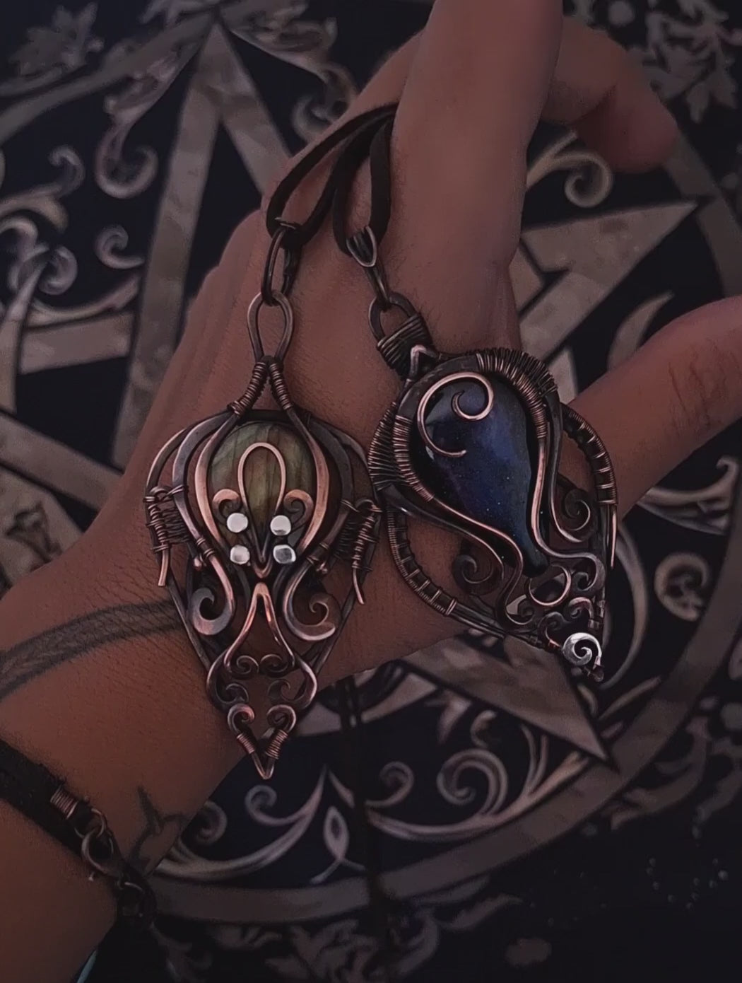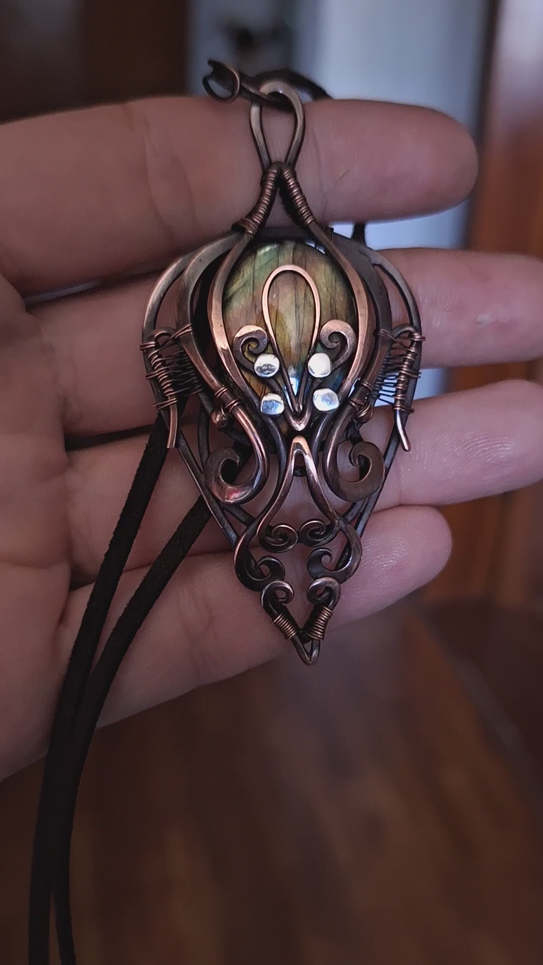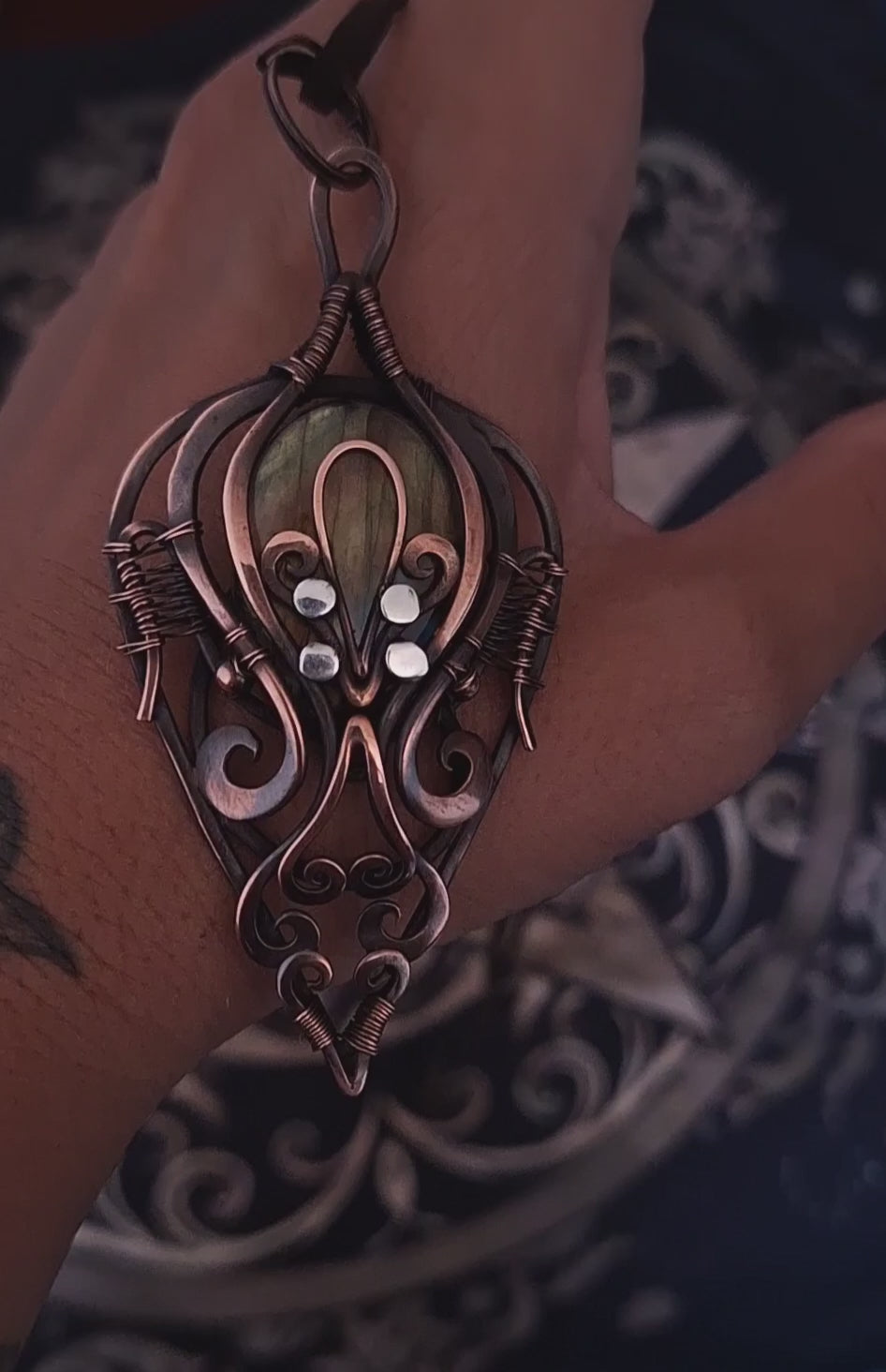Magic 1001 nights jewelry antiqued pendant with natural labradorite