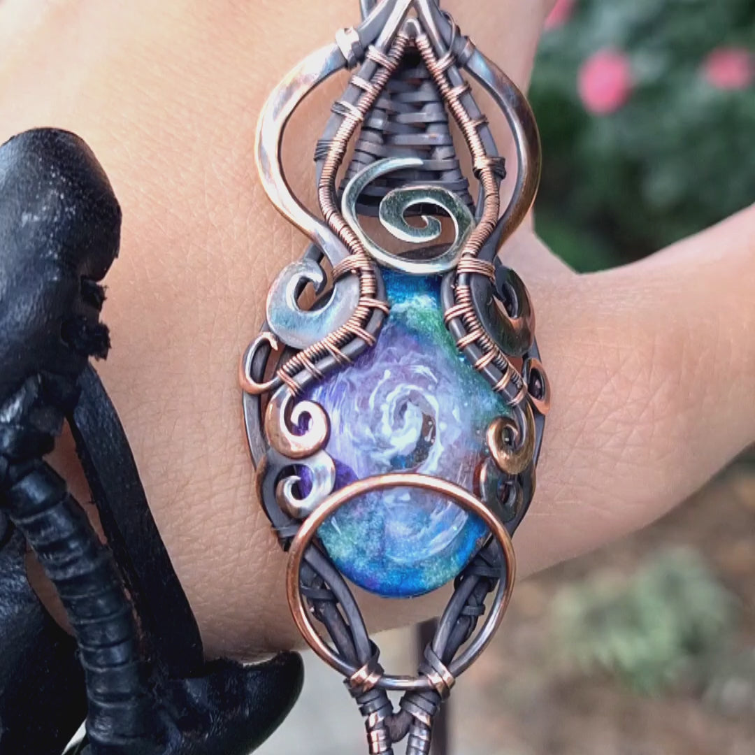 - Materials: pure copper, resin, acrylic paintings, sterling silver