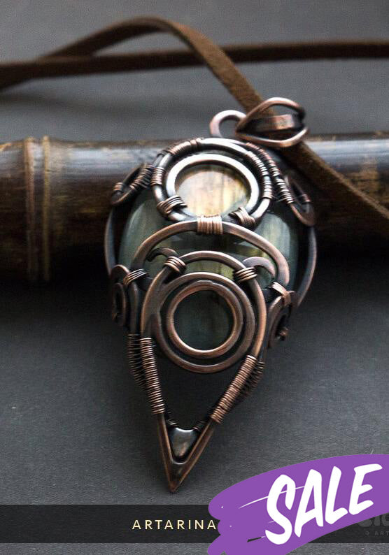 Copper wire wrapped witchcraft stuff pendant with labradorite