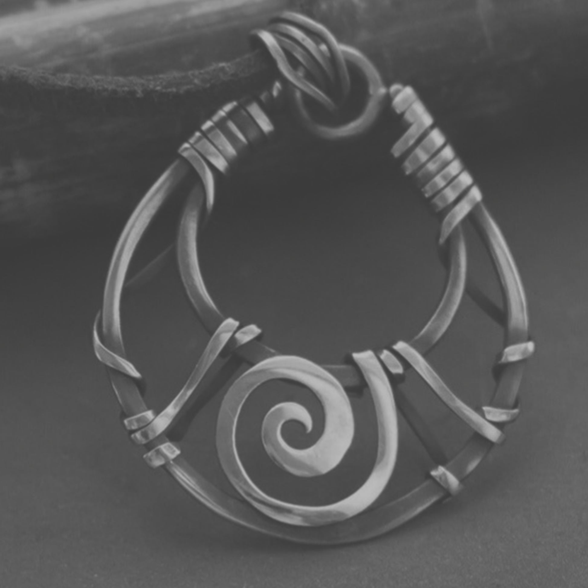 Pagan wiccan jewelry. Talismanic spiral symbols necklace