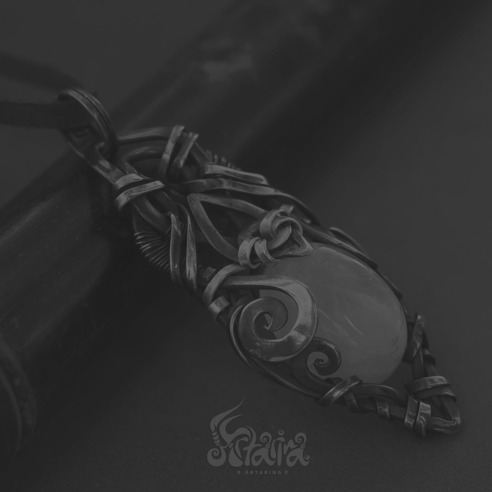 Moonstone and Copper Rustic pendant Alternative jewelry | New age jewelry | Wire weaved unique pendant necklace