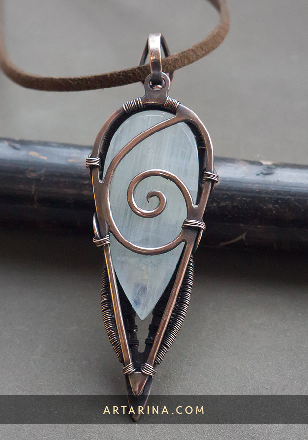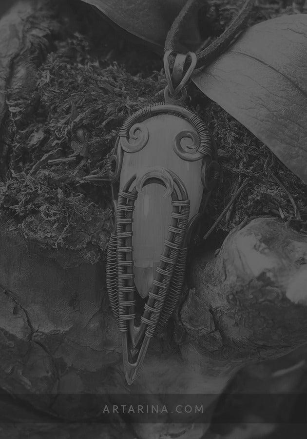 Copper wire wrapped celtic druid pendant with moonstone.