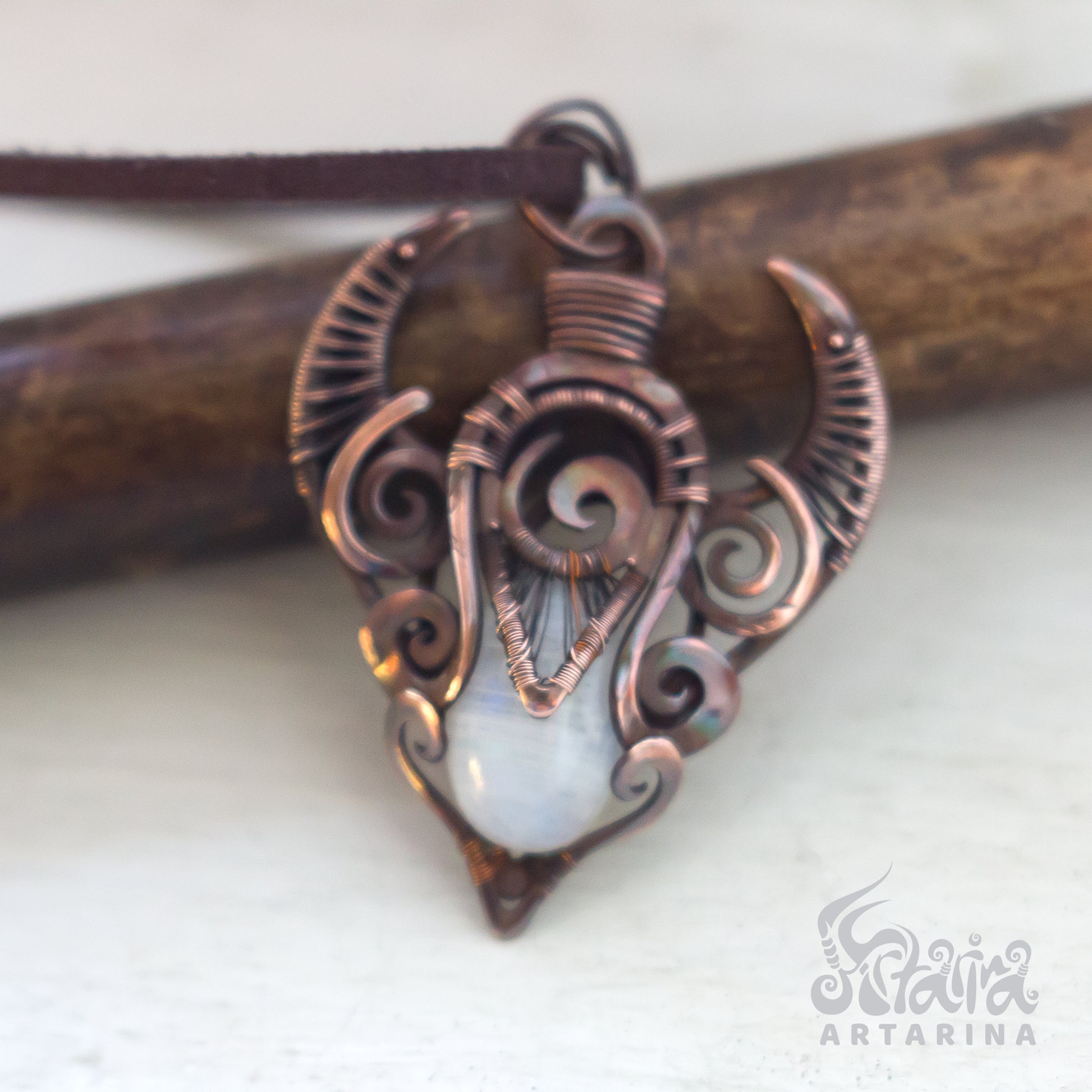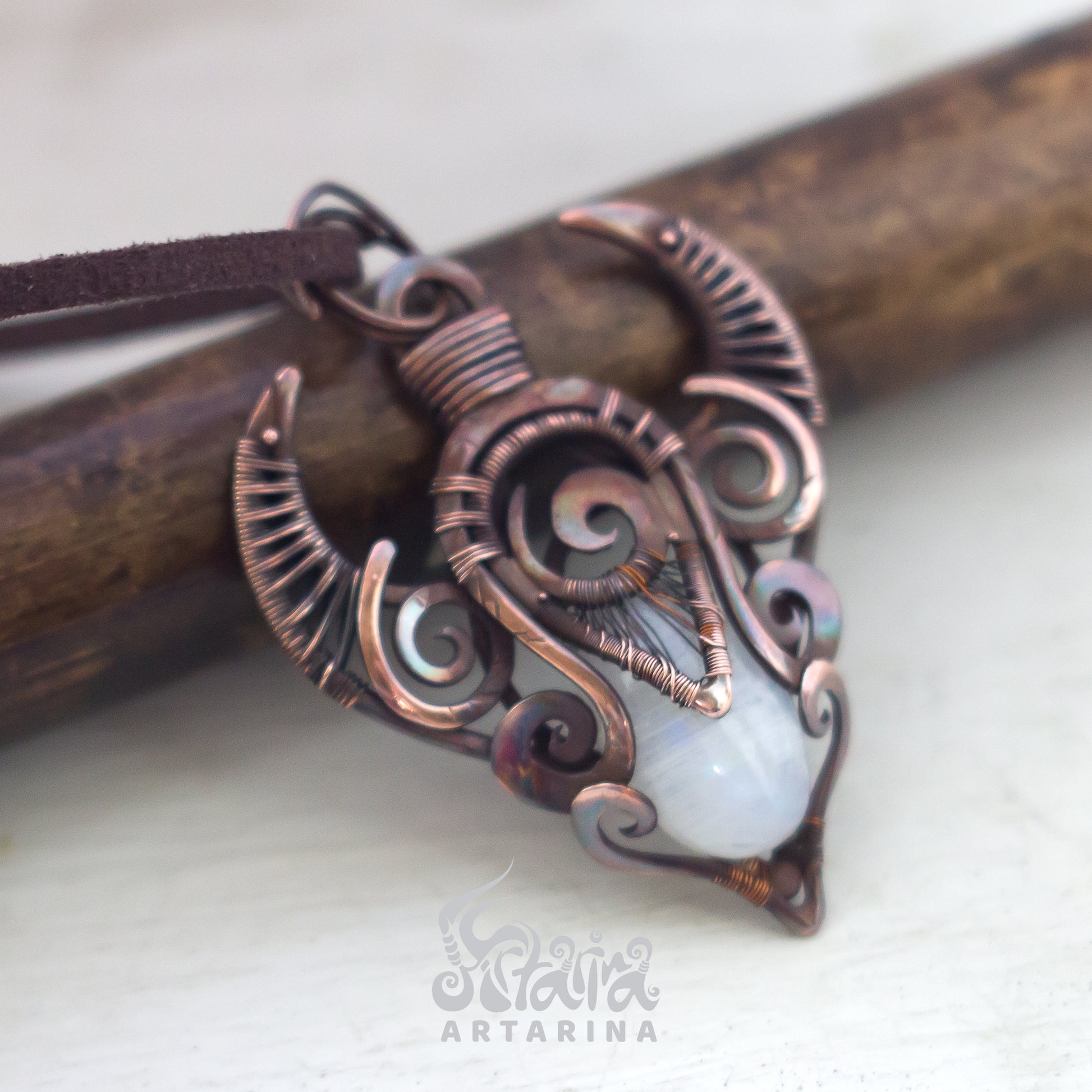 The Moonstone Protection Amulet Necklace from Artarina is a beautiful piece of jewelry that not only adds to your style but also provides protection. This unique necklace features a smooth, polished moonstone that has been set in a handcrafted copper amulet pendant. Moonstone is known for its calming and protective properties, making it the perfect stone to wear as an amulet.