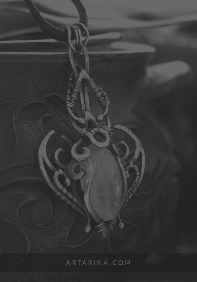 Sterling silver wire wrapped fantasy pendant with moonstone