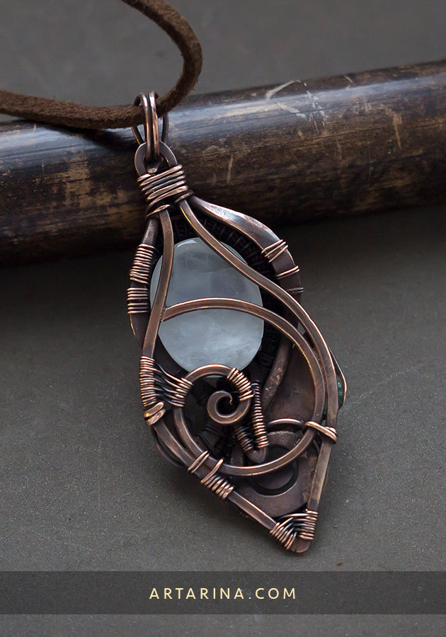 Copper gets darken with time. To return the original shine, simply wipe the convex sections on your necklace (in case of severe darkening it is permissible to apply a little toothpaste on a dry cloth), and then rinse the product with water and wipe it with a soft textile