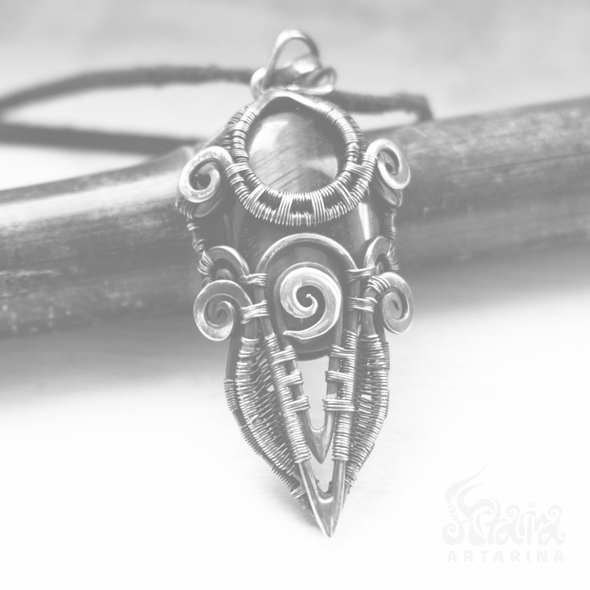 Handmade pure copper wire wrapped necklace with natural tiger's eye stone. Necklace is 100% handmade, one of a kind and unique. Original design by Artarina