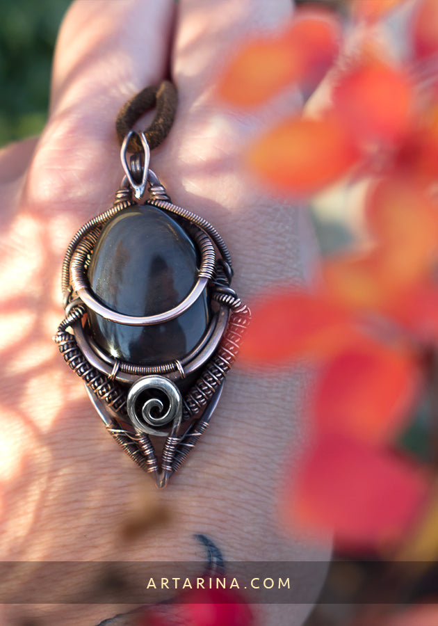 Copper gets darken with time. To return the original shine, simply wipe the convex sections on your necklace (in case of severe darkening it is permissible to apply a little toothpaste on a dry cloth), and then rinse the product with water and wipe it with a soft textile