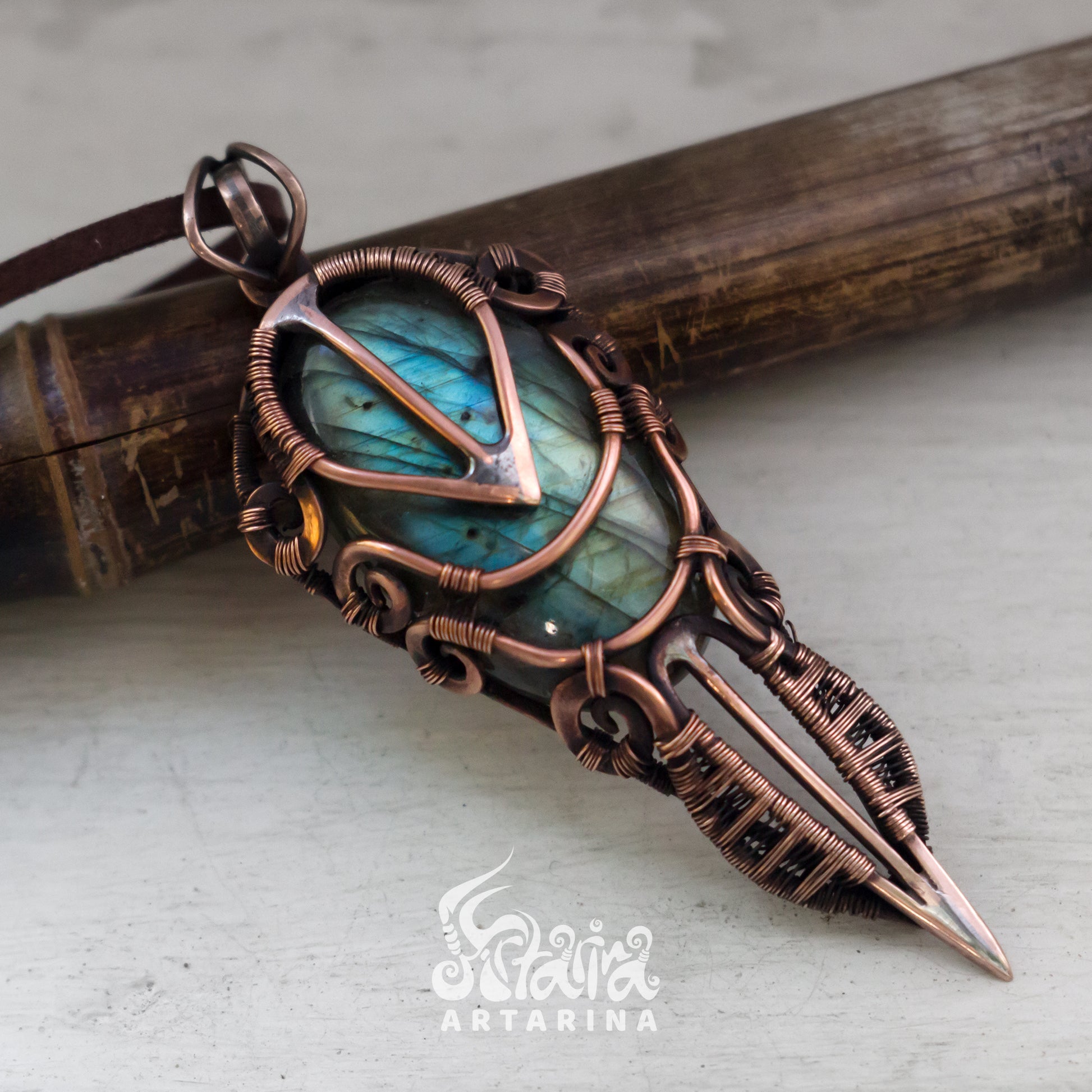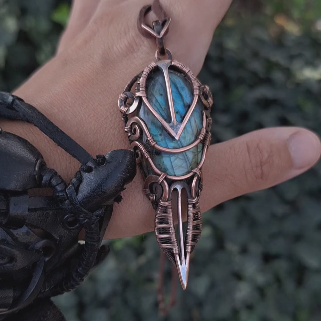 Occult jewelry. Magical wiccan witchy wizard labradorite necklace