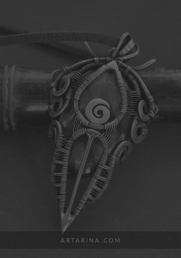 Pagan aesthetic wire wrapped necklace with multicolored labradorite