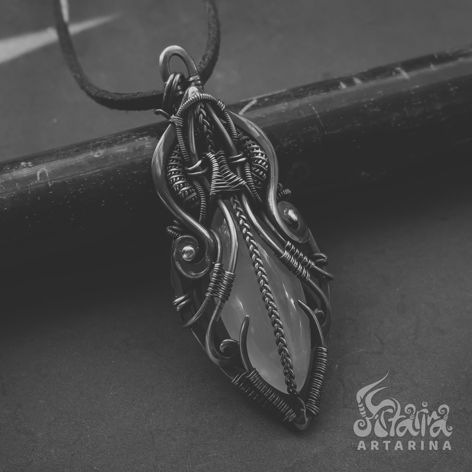 Pure copper heady wire wrapped necklace with natural rose quartz stone. Necklace is 100% handmade, one of a kind and unique. Original design by Artarina