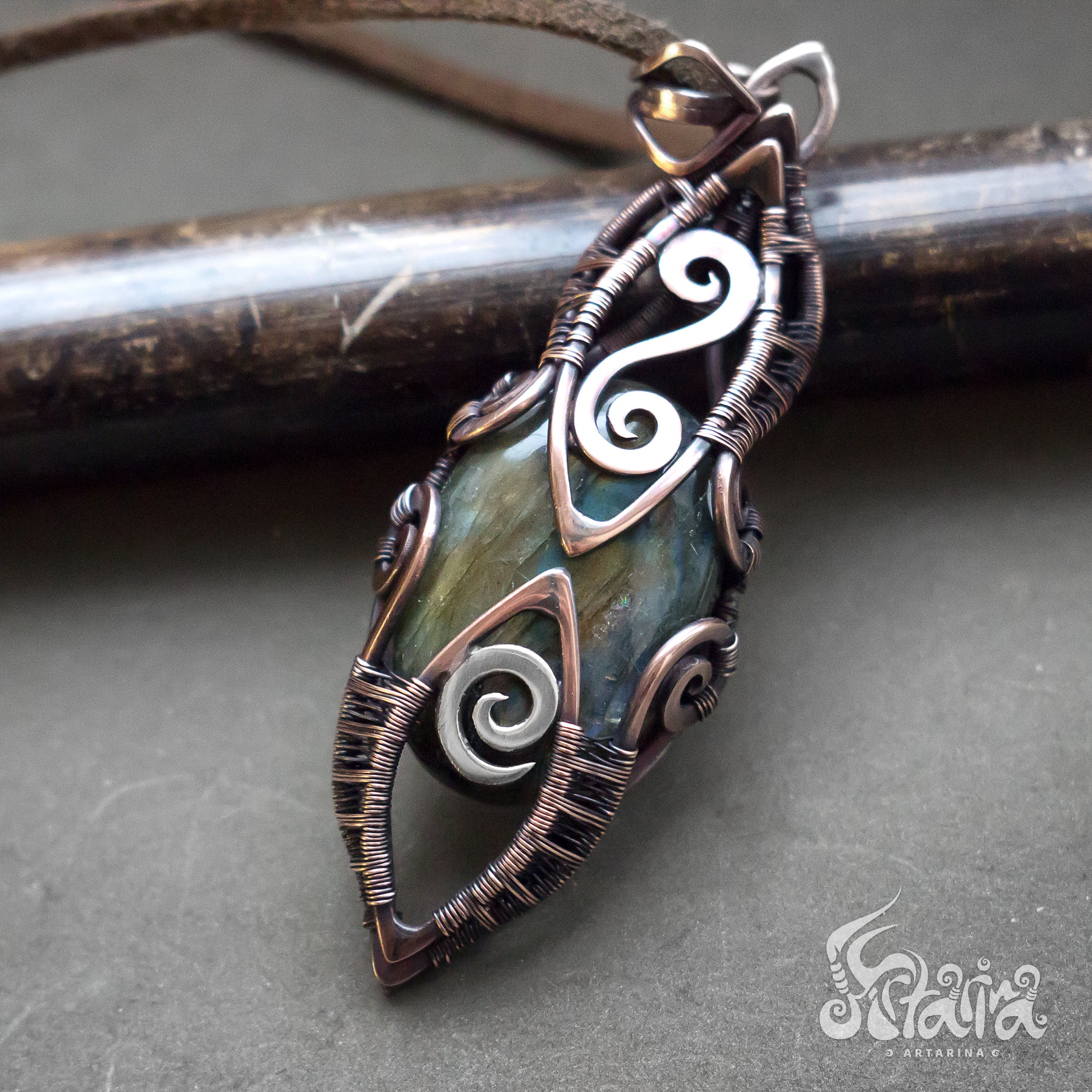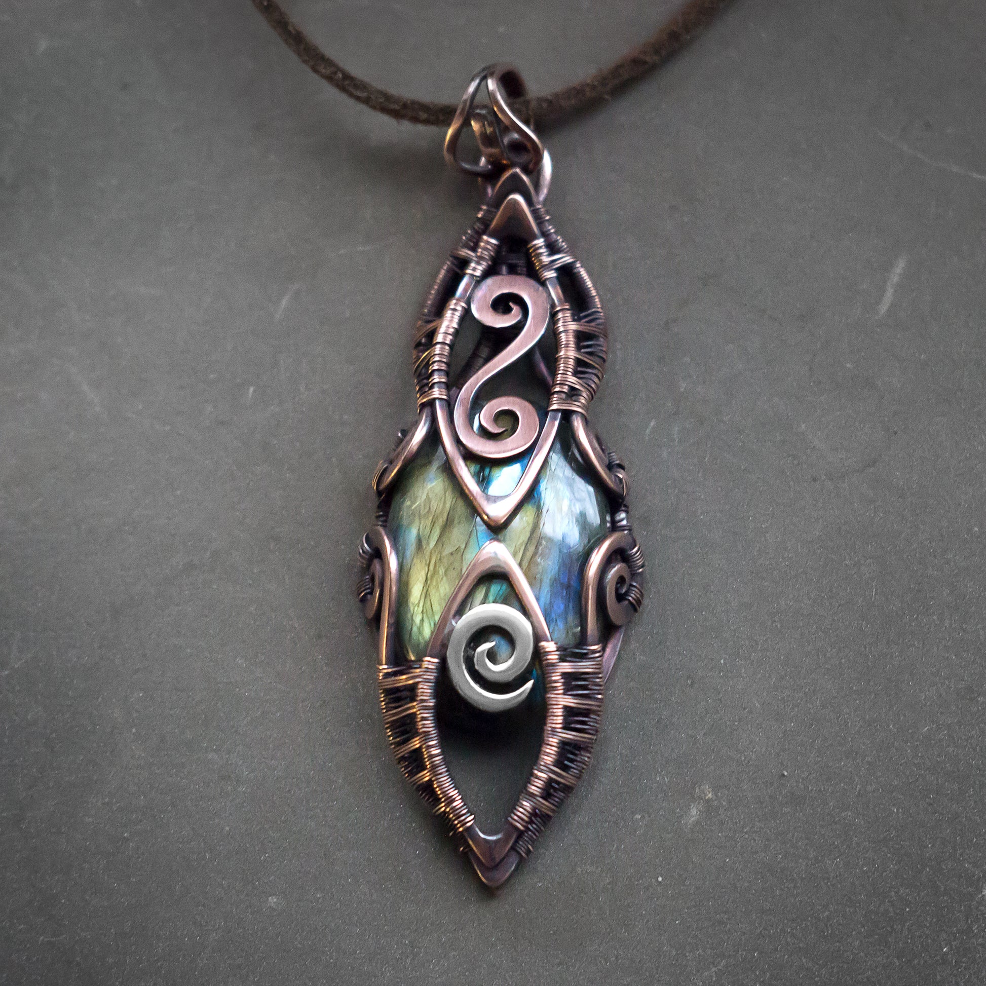 Rustic Copper Unique Necklace Pendant - a stunning and one-of-a-kind piece of jewelry that combines the rustic beauty of copper with the mystical power of labradorite. Handwoven with care and attention to detail, this necklace is truly a work of art.