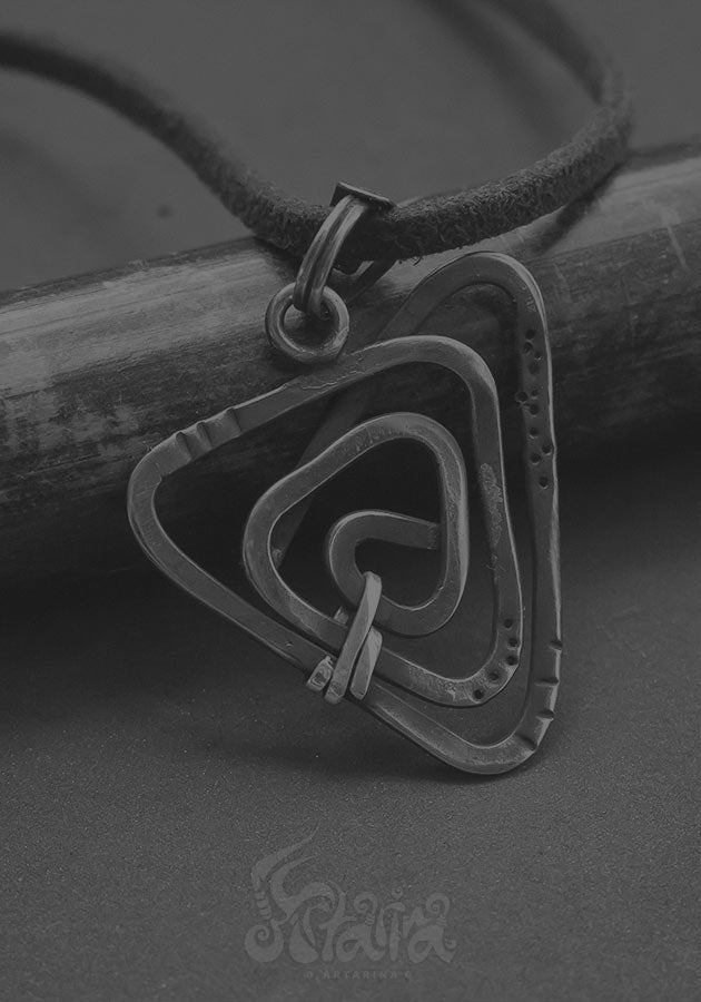 The use of copper metal in the pendant gives the necklace a rustic and earthy feel, while the sleek triangle arrow point design adds a modern twist. This combination of old and new, rustic and modern, makes the Rustic Necklace a versatile piece that can be worn with a variety of styles and looks.Share