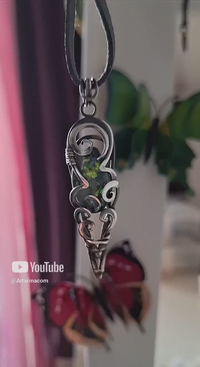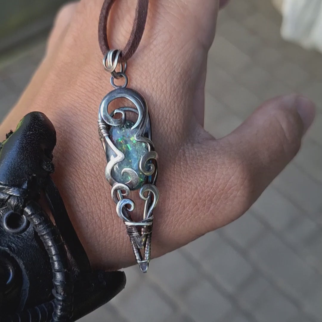 Silver wire wrapped fantasy spiritual necklace. Gothic necklace