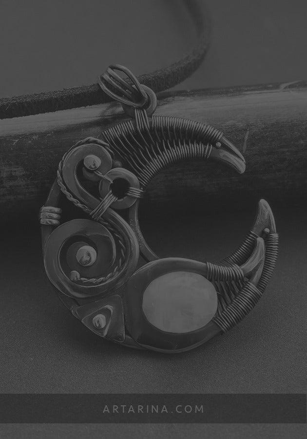 Antiqued copper moon necklace with moonstone
