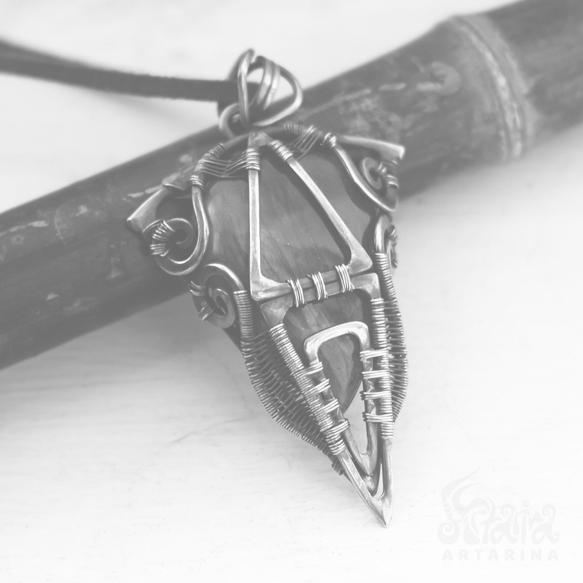 Plague doctor pendant, steampunk clothing, outlander jewelry, techwear accessories labradorite pendant, grunge jewelry