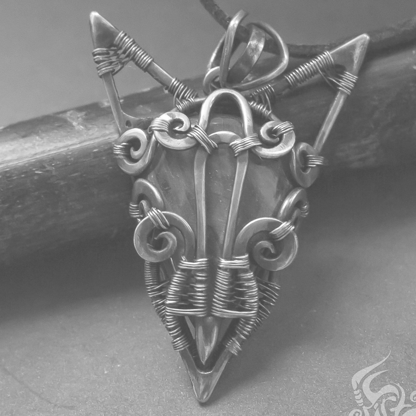 Handmade steampunk design pendant necklace with natural labradorite stone. Necklace is 100% handmade, one of a kind and unique. Original design by Artarina