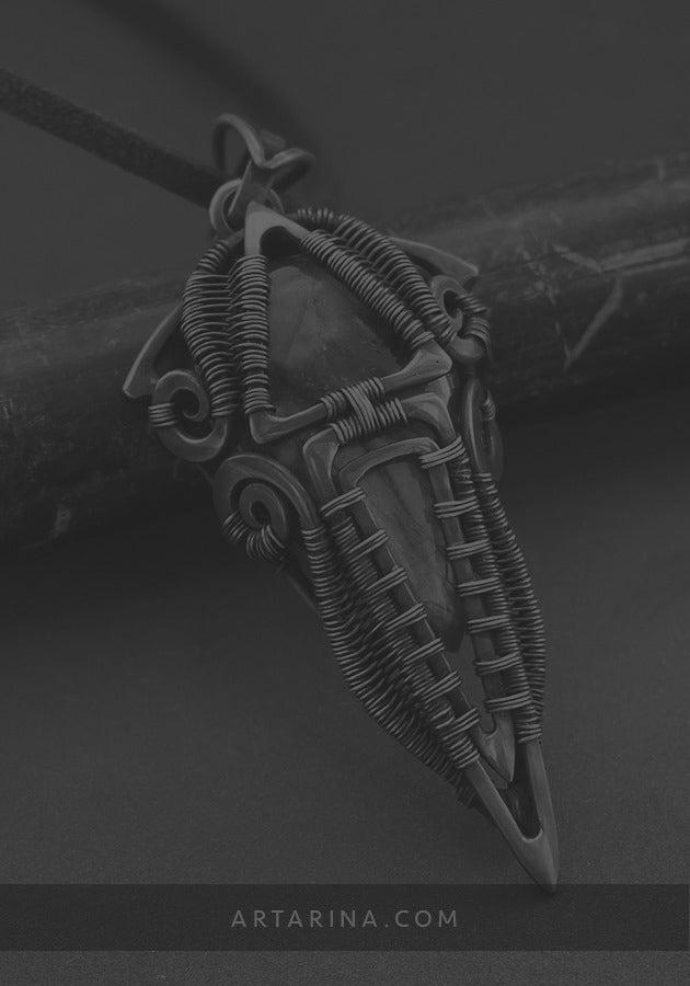 Steampunk wire wrapped gemstone mens necklace
