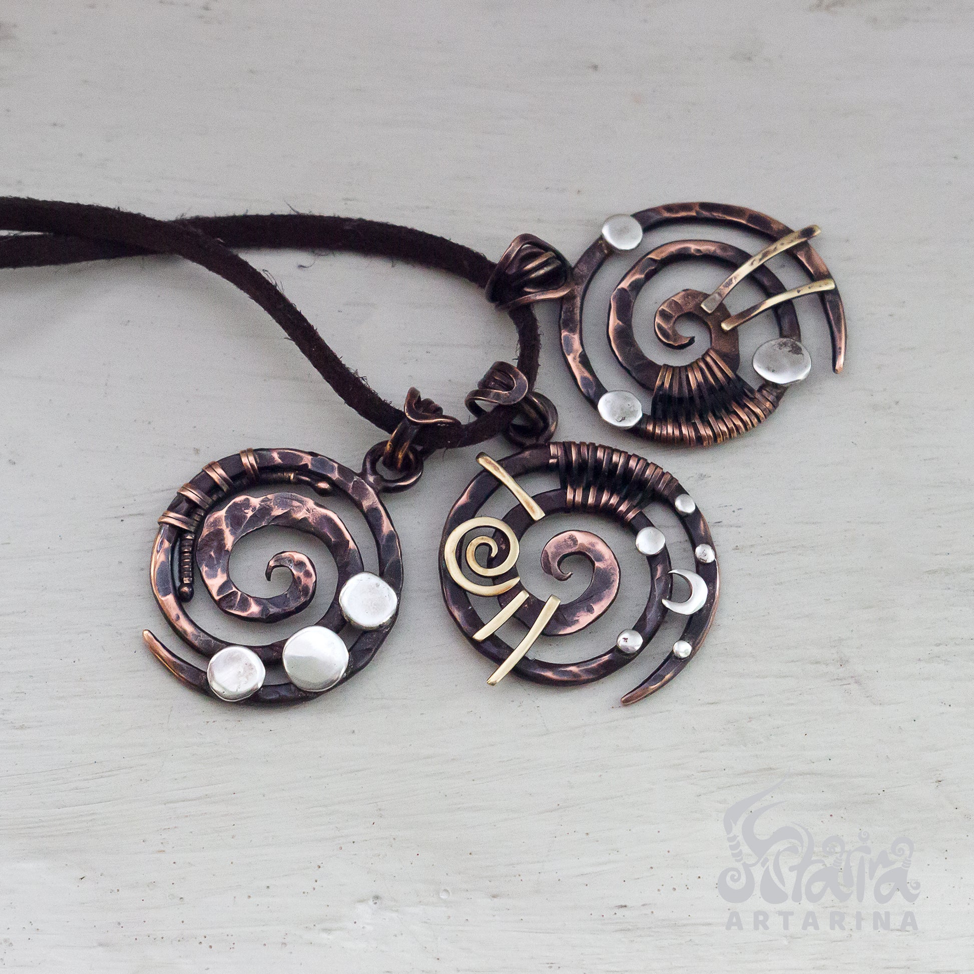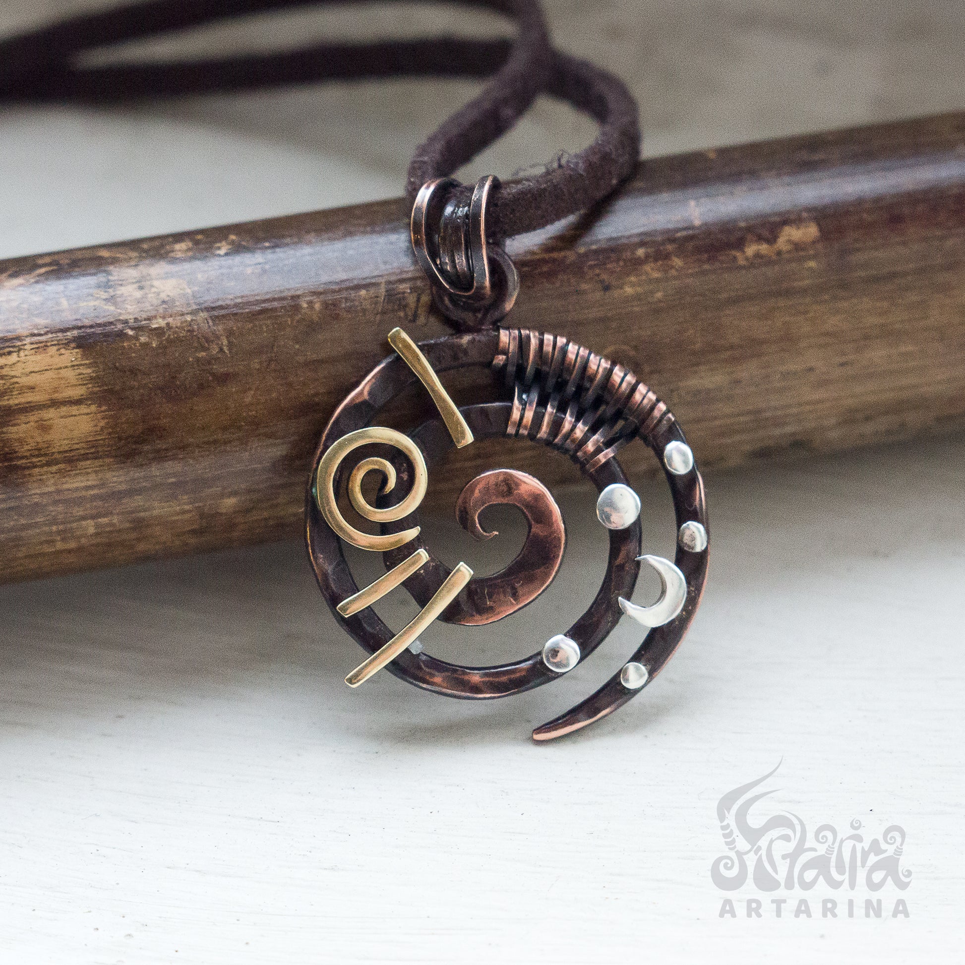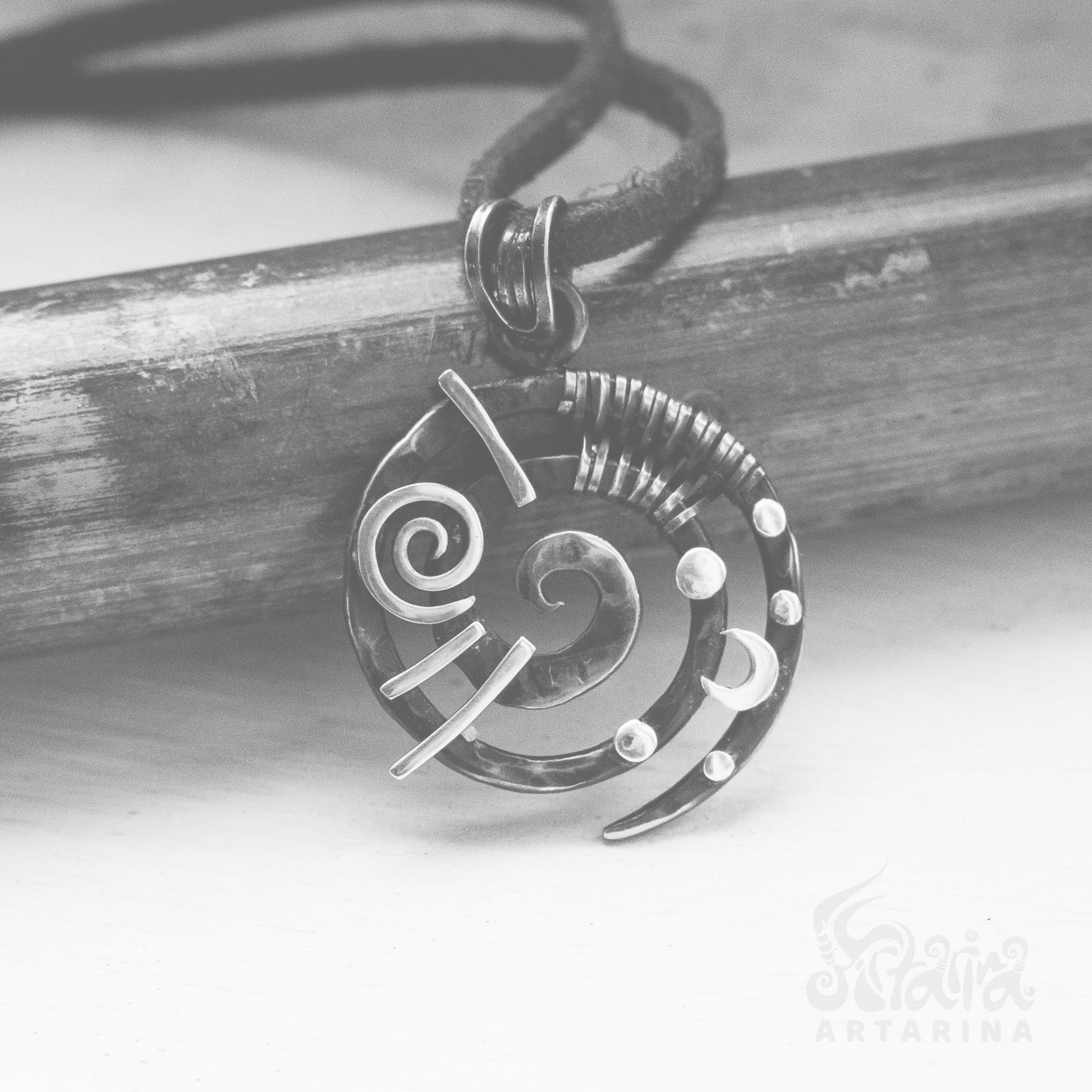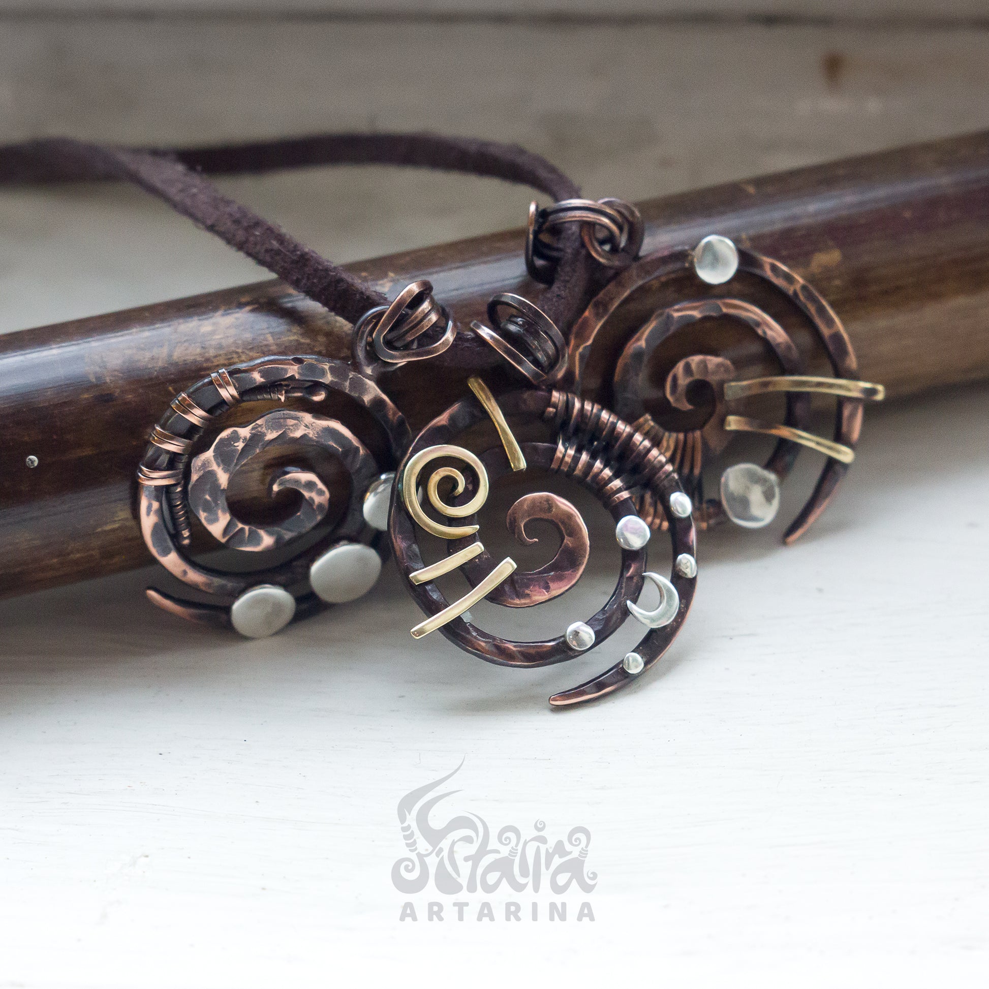 Handmade hand forged wire wrapped spiral necklace. Each piece is hand cut, shaped and hammered. This spiral necklace is 100% handmade, one of a kind and unique. Original design by Artarina.
