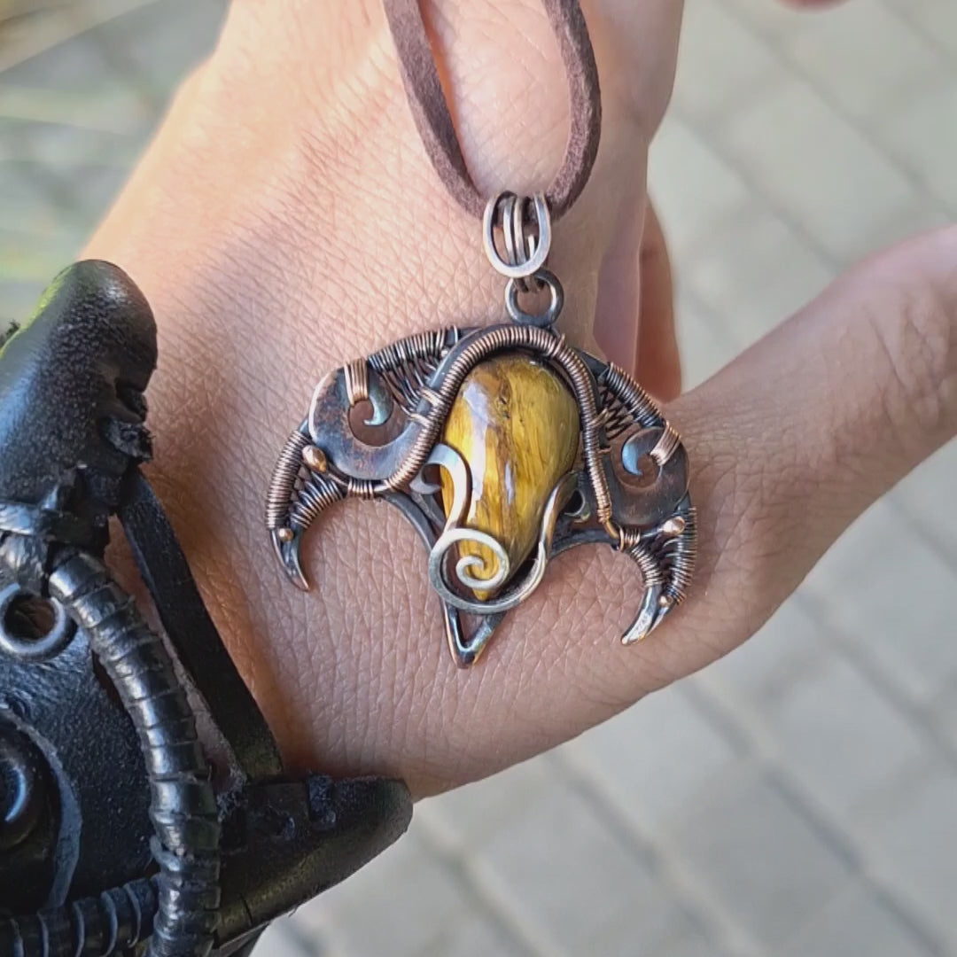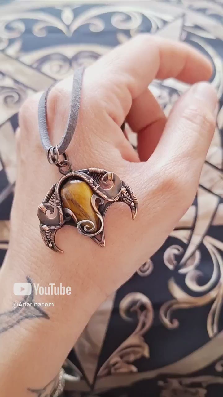 Tiger's eye ancient art wire wrapped necklace