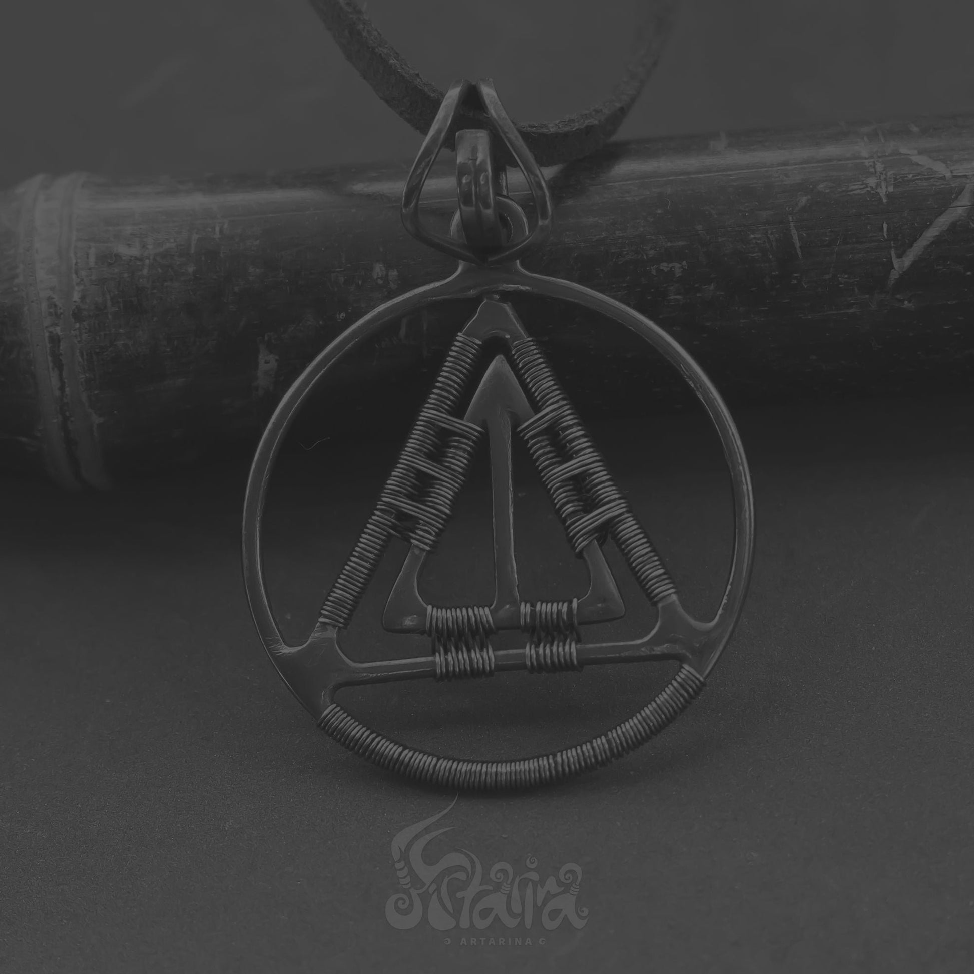 Triangle and circle pendant | Sacred geometry wire handcrafted unique jewelry | Symbolical round patinated copper necklace | Artarina
